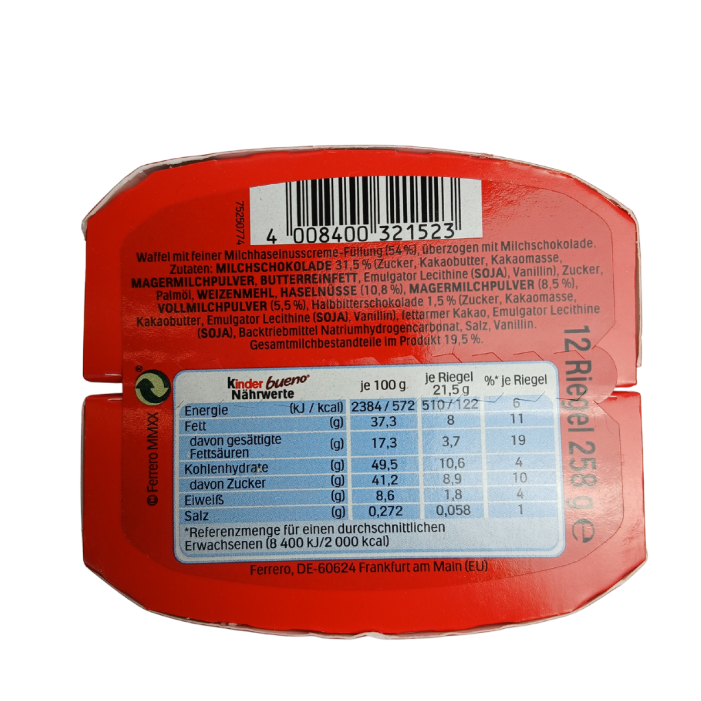 Батончики Kinder Bueno - це улюблені ласощі, які складаються з неймовірно тонкої та хрусткої вафлі, наповненої ніжним молочно-горіховим кремом. Кожен батончик занурений у вишуканий молочний шоколад Milka та прикрашений легкими смужками темного шоколаду. Упаковка на 12 індивідуально запакованих батончиків ідеально підходить для великої родини, ділення з друзями або для забезпечення ситного та смачного перекусу протягом тривалого часу. Вони тануть у роті та дарують миттєву насолоду