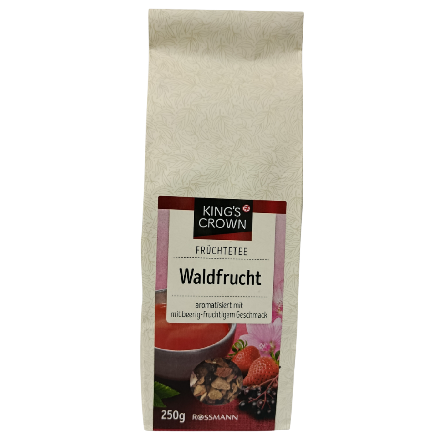 Насолоджуйтеся яскравим смаком лісу з фруктовим чаєм King's Crown Waldfrucht! Цей ароматний напій без кофеїну поєднує в собі насичений мікс лісових ягід і фруктів, даруючи відчуття свіжості та літнього настрою.