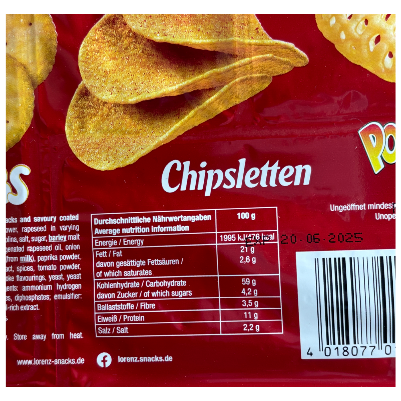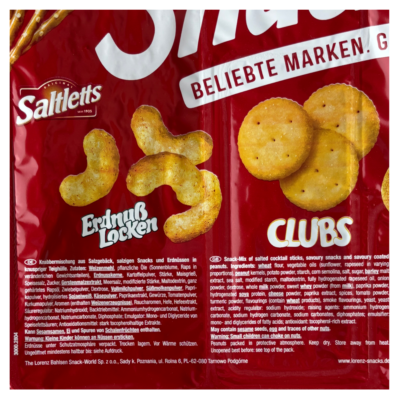 Асорті снеків від Lorenz- це велика упаковка смачних закусок, таких, як: чіпси, крекери, горішки та інші хрусткі делікатеси.  Ці снеки ідеально підходять для спільного вживання на вечірках, пікніках або просто як швидкий перекус. Упаковка зручна для транспортування і споживання, що дозволяє насолоджуватися смаками в будь-який момент. Це відмінний вибір для всіх, хто любить хрусткі закуски та хоче спробувати щось нове!