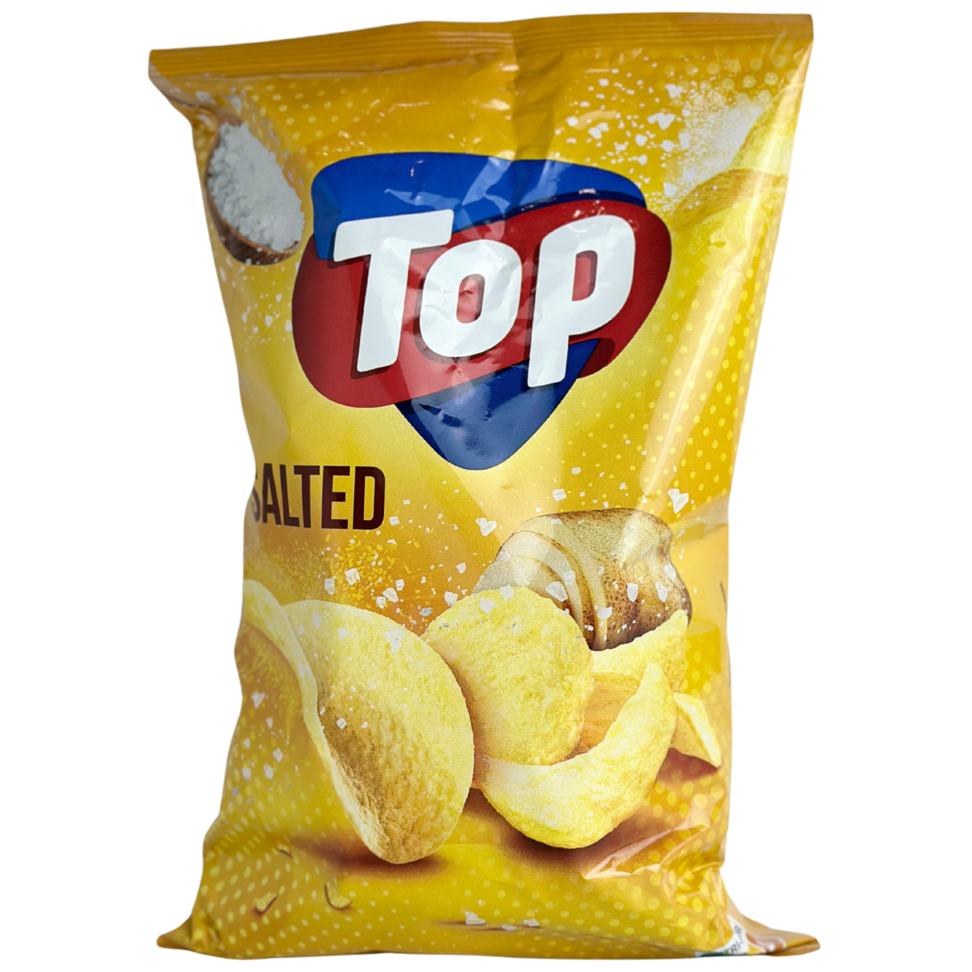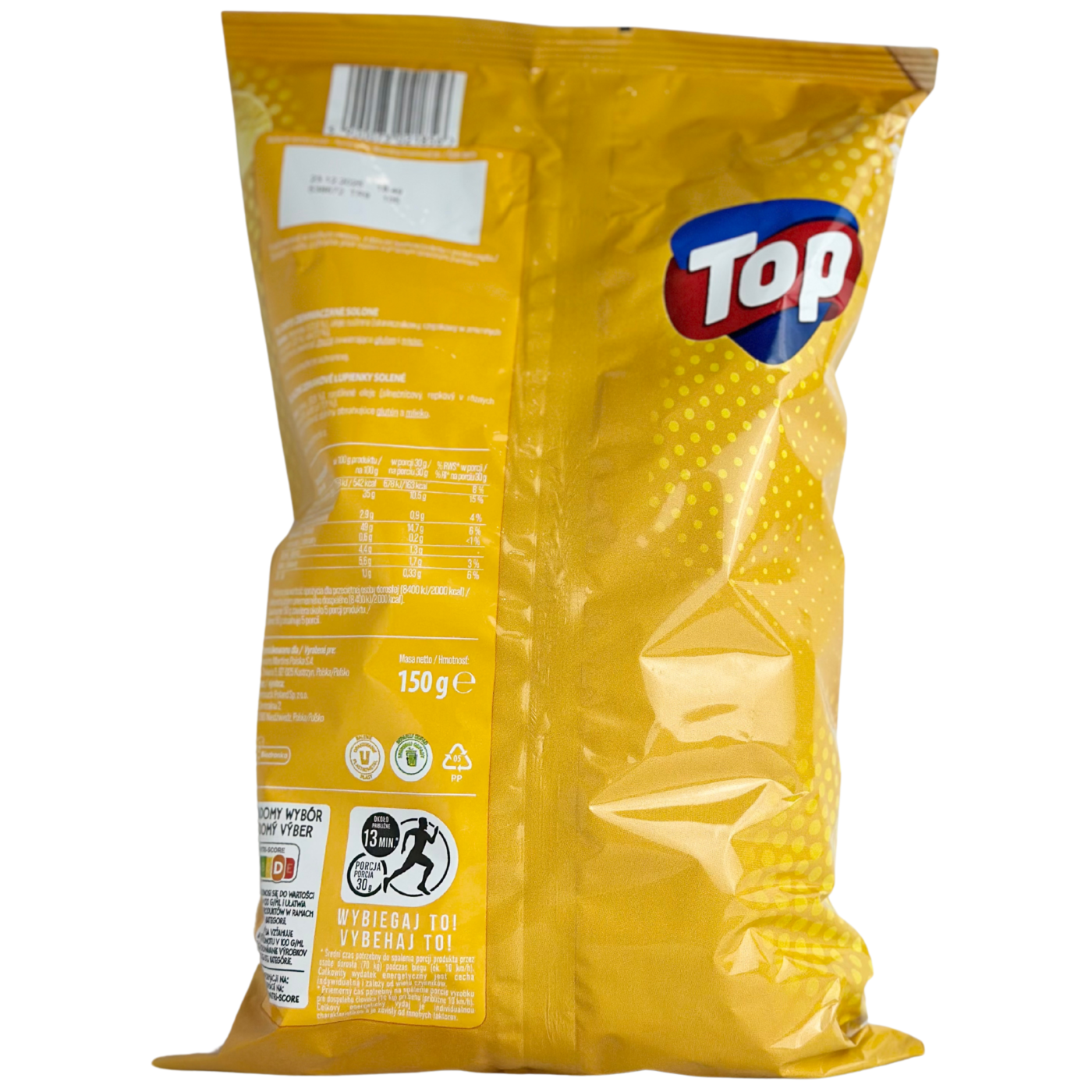 Картопляні чіпси TOP солені — класична закуска з насиченим смаком та ідеальною хрусткою текстурою. Виготовлені з добірної картоплі, смаженої до золотистої скоринки, вони зберігають природний смак, який підкреслює легка нотка солі. Ці чіпси стануть чудовим доповненням до вечірніх переглядів фільмів, зустрічей з друзями чи швидкого перекусу. Зручна упаковка 150 г дозволяє насолоджуватися улюбленим смаком будь-де та будь-коли.