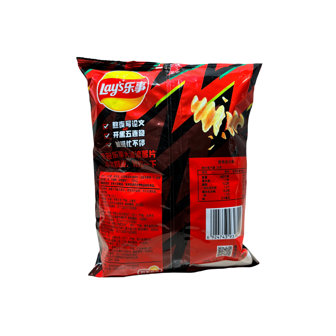 Китайські чіпси Lay's з пікантним смаком стріпсів з олією чилі. Екзотичний смак для любителів гостренько. Цей хрусткий снек поєднує в собі пікантний аромат та подвійну гостроту, що робить його ідеальним вибором для тих, хто шукає яскраві смакові враження. Відомі своїм інтенсивним смаком, ці чіпси неодмінно викличуть захоплення у тих, хто любить випробовувати свої смакові рецептори на міцність.