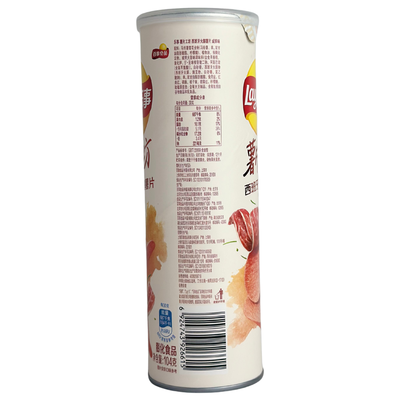 Картопляні чіпси зі смаком іспанської шинки Lay's Spanish Ham - це картопляна закуска з інтригуючим смаком, вироблена для китайського ринку. Приготовані з особливою ретельністю, ці азіатські чіпси характеризуються ідеальним поєднанням виняткового смаку та надзвичайно хрусткої текстури. Картопляні чіпси Lay's Spanish Ham збагачені смаком традиційної іспанської шинки з інтенсивним ароматом і солоним присмаком. Це унікальна пропозиція для любителів оригінальних закусок і ідеального хрусту, характерного для продукції Lay's.