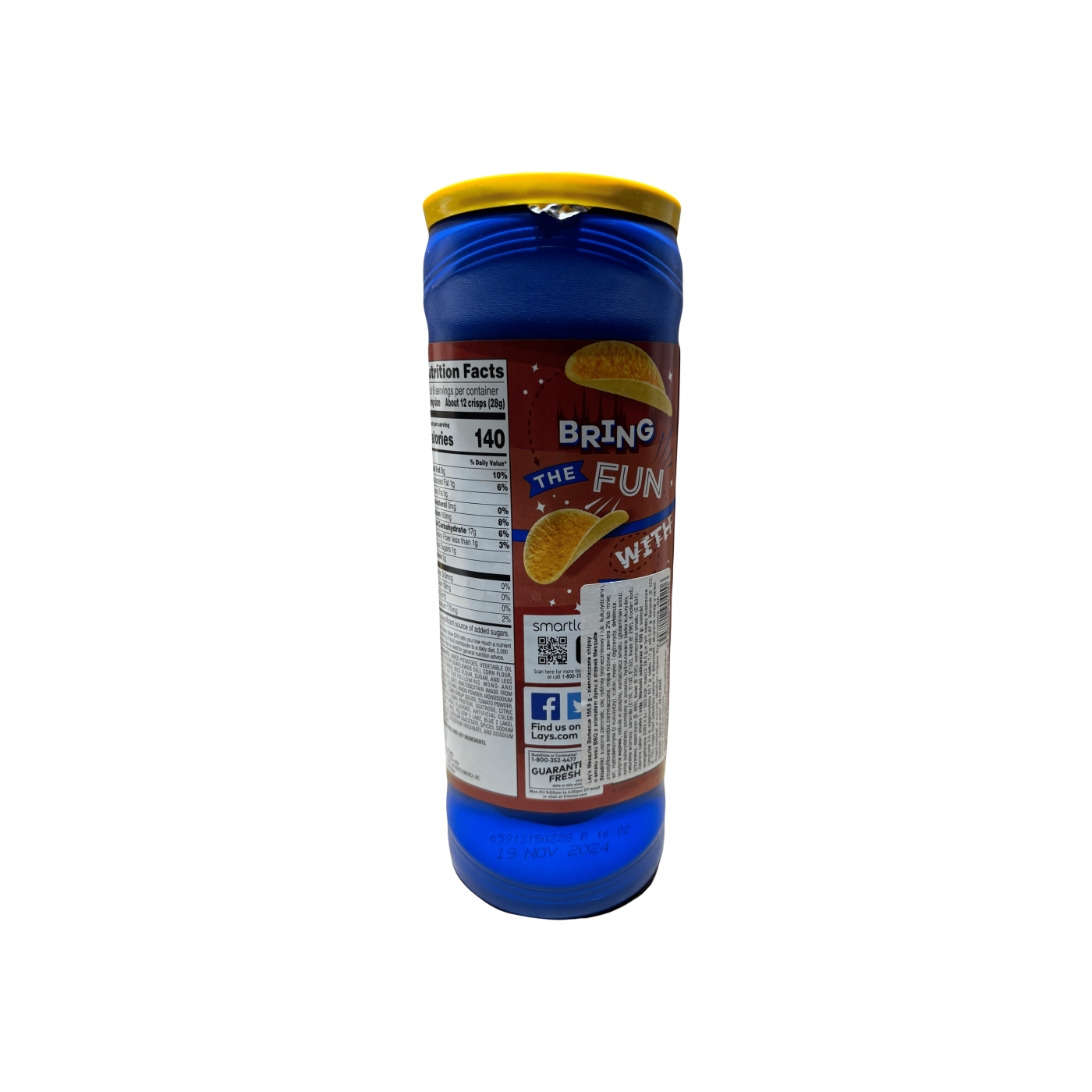 Чіпси Lay's Stax Mesquite Barbrcue з димним, пряним ароматом барбекю подарують незабутні смакові відчуття. Гарячий перець чилі у поєднанні з солодкими нотами помідорів та паприки не залишать байдужими нікого. Рівні скибочки унікальної форми та однакового розміру були упаковані в банку циліндричної форми, яка дозволяє досягти максимального рівня безпеки продукту при транспортуванні.
