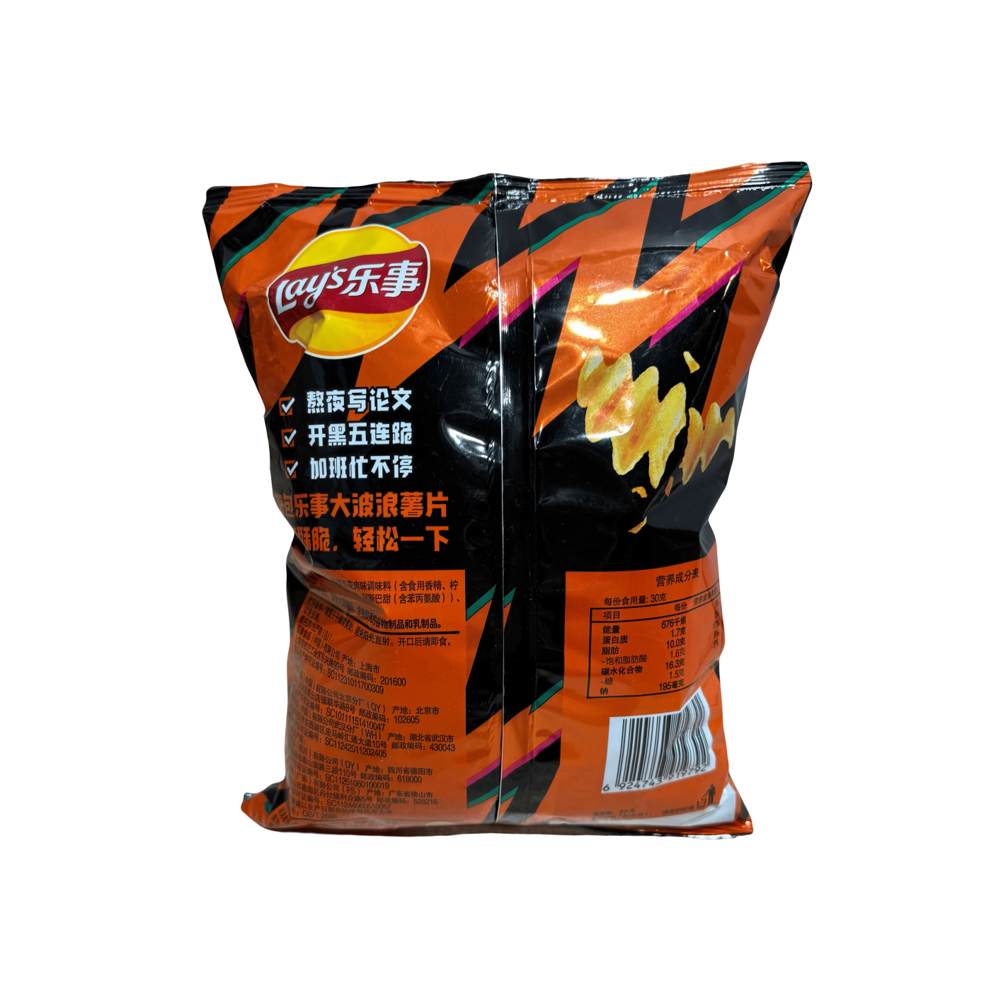 Хвилясті чіпси Lay's китайського виробництва - це справжній вибух смаку. Кожен шматочок чипсів насичений інтенсивним смаком свинини смаженої на вугіллі. Текстура чипсів – хрустка та неповторна, яка робить їх найкращим супутником для вашого вечірнього перегляду фільму або вечірки з друзями.