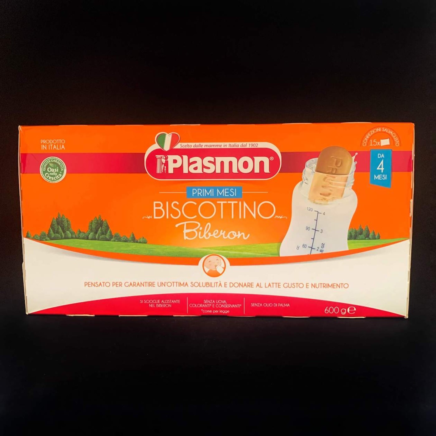Перше печиво для ваших малюків, адже його можна додавати до дитячого харчування з 4-х місяців. Печиво від італійського виробника Плазмон Біскотіно Біберон – це легкий, поживний прикорм, який виробник рекомендує додавати до молока у пляшечку. Виготовляється без шкідливих домішок, консервантів та барвників, пальмової олії, а також до складу не входять яйця та масло, що відмінно підходить для першого прикорму і поступового відлучення малюка від грудного вигодовування, не викликає алергічних реакцій.