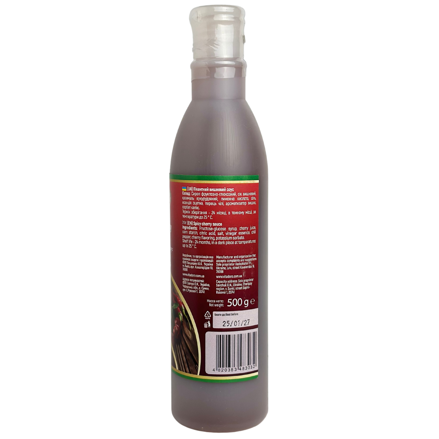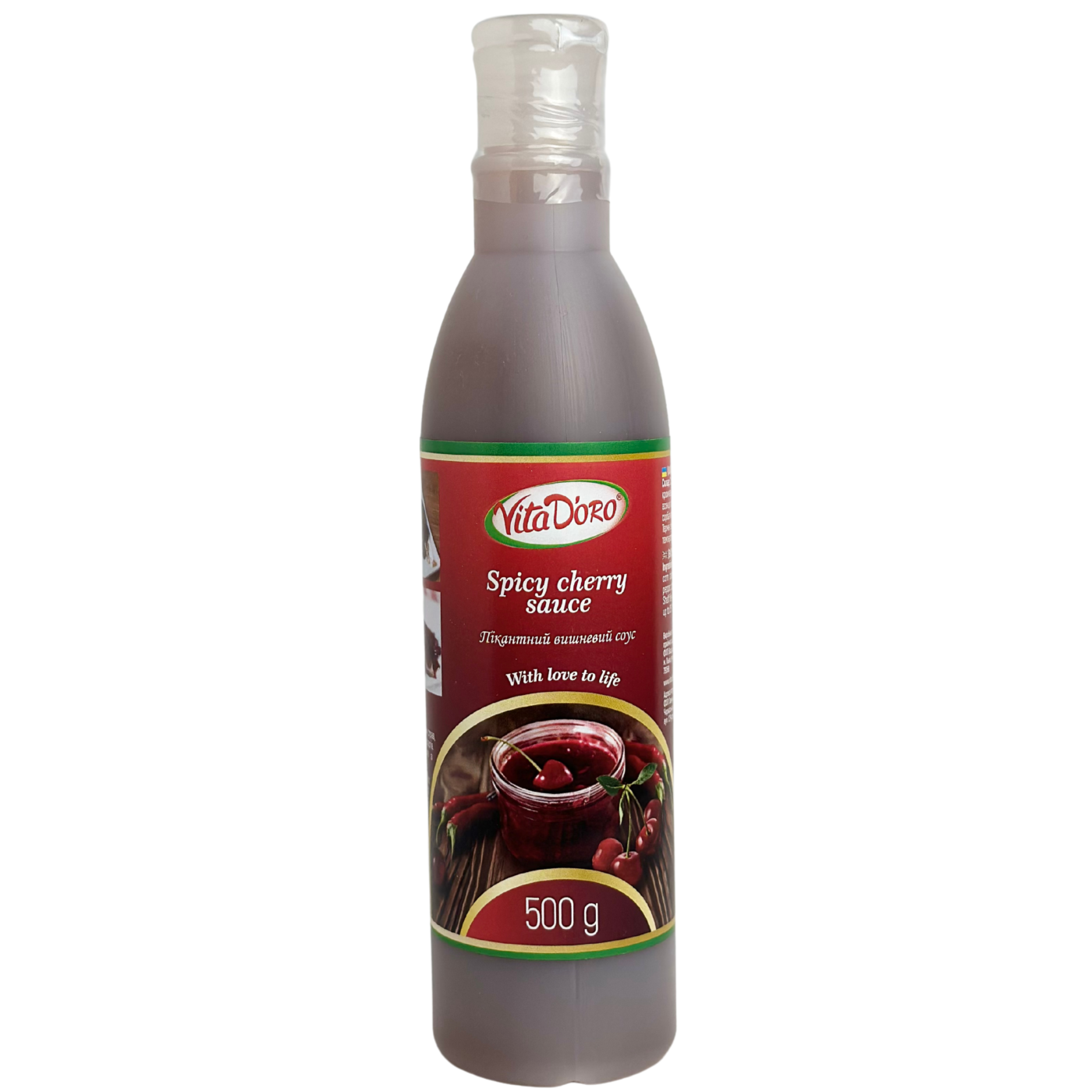 Соус вишневий - має яскраво-виражений смак і аромат вишні з пряними нотками. Добре поєднується зі стейком, шашликами чи іншими мʼясними стравами. Кислинка вишні створює цікавий контраст та робить ваше мʼясо ще смачнішим.