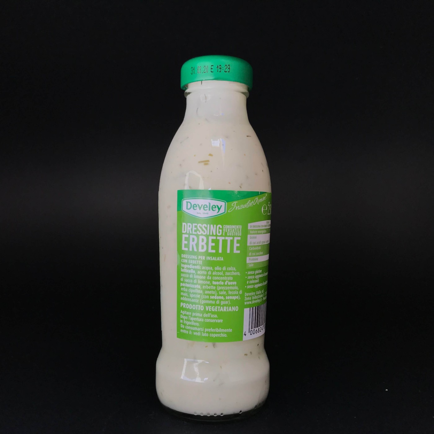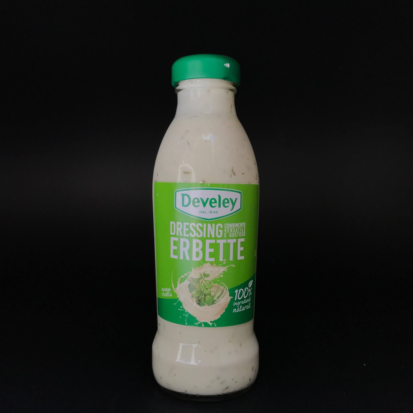 Ароматний соус з трав Develey Dressing Erbette використовують в якості заправки будь-яких видів салатів, додають до запечених овочів, бобових та білого м’яса.