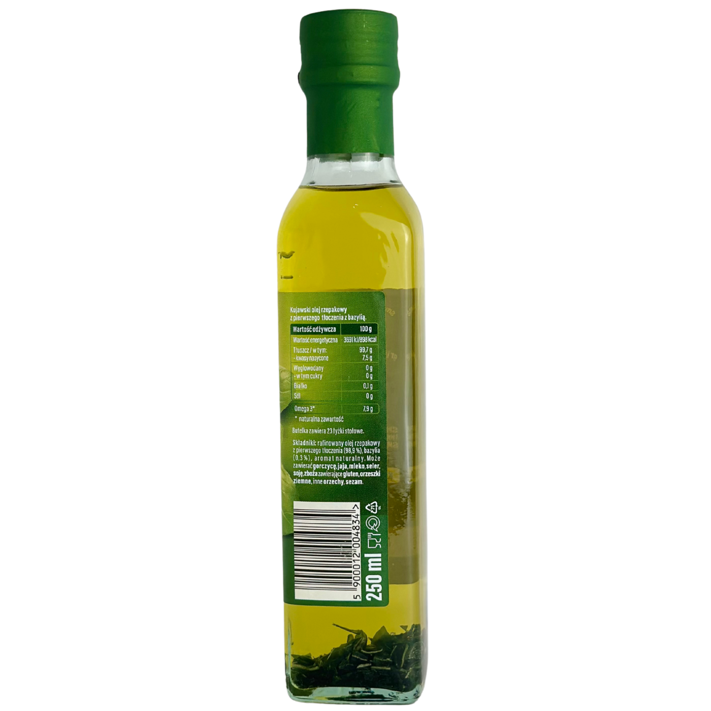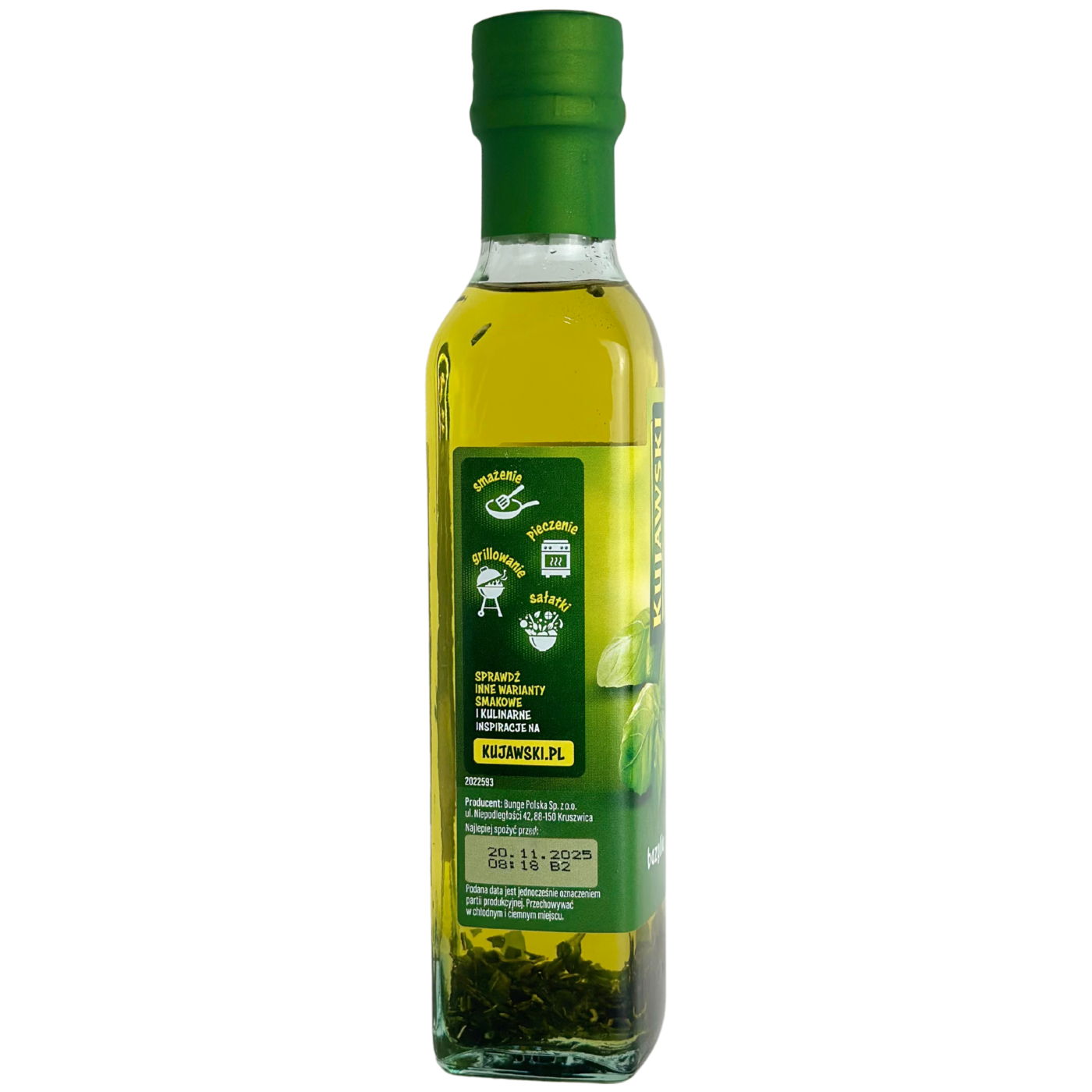 Олія Kujawski з базиліком додає стравам неповторний смак і аромат, роблячи їх більш яскравими та смачними. Упаковка 250 мл зручна для щоденного використання на кухні.