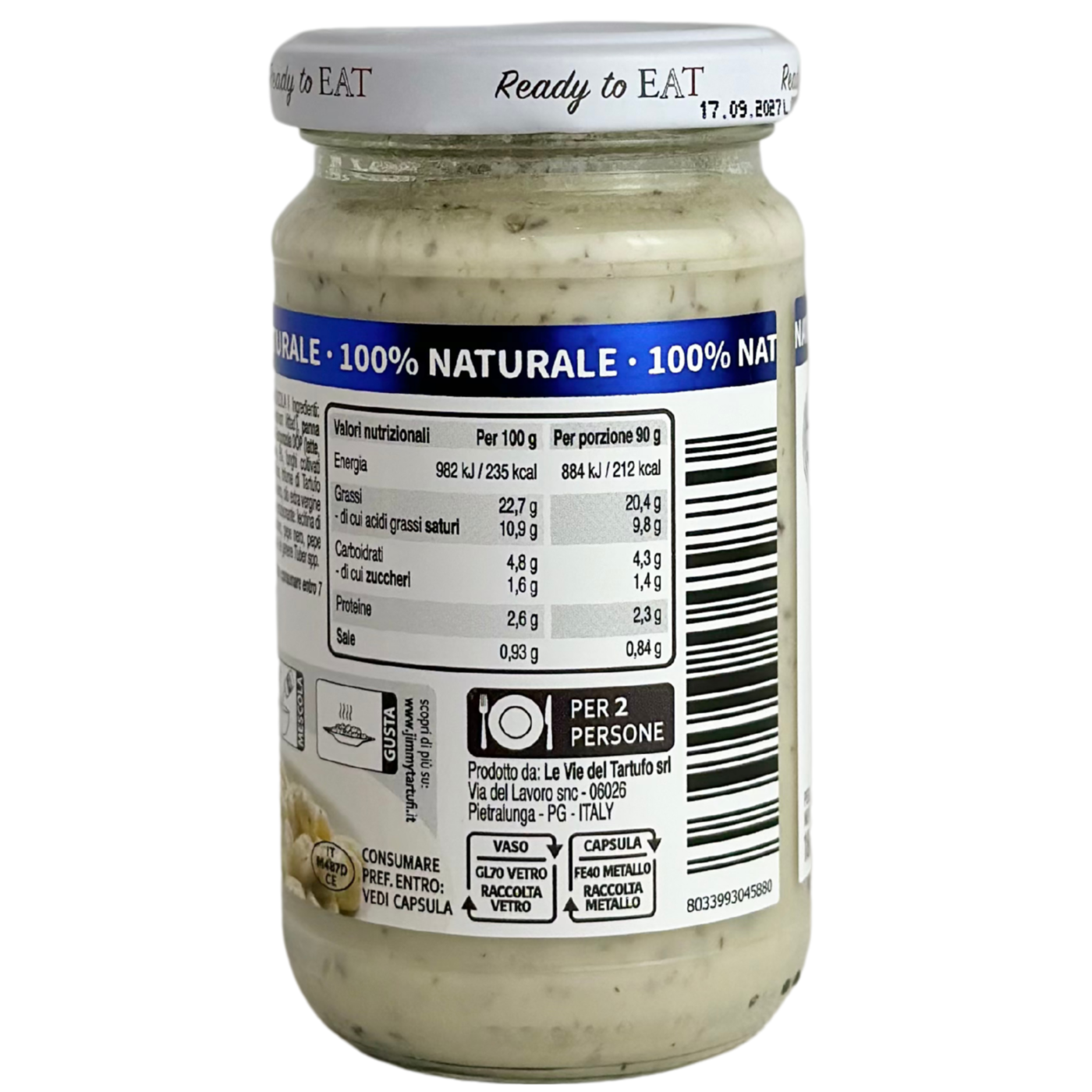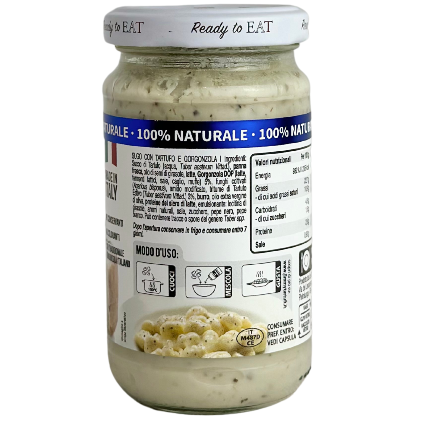 Крем з горгонзолою та чорним трюфелем Tartufi Gimmy — це унікальний делікатес, який поєднує насичений смак італійського сиру горгонзола з витонченим ароматом чорного трюфеля. Цей продукт ідеально підходить для додавання вишуканої нотки до пасти, м’ясних страв, тостів або легких закусок. Крем має ніжну, бархатисту текстуру, яка легко розподіляється і розкриває багатство смаків. Виготовлений за традиційною рецептурою з натуральних інгредієнтів, він підкреслить смакові особливості будь-якої страви.
