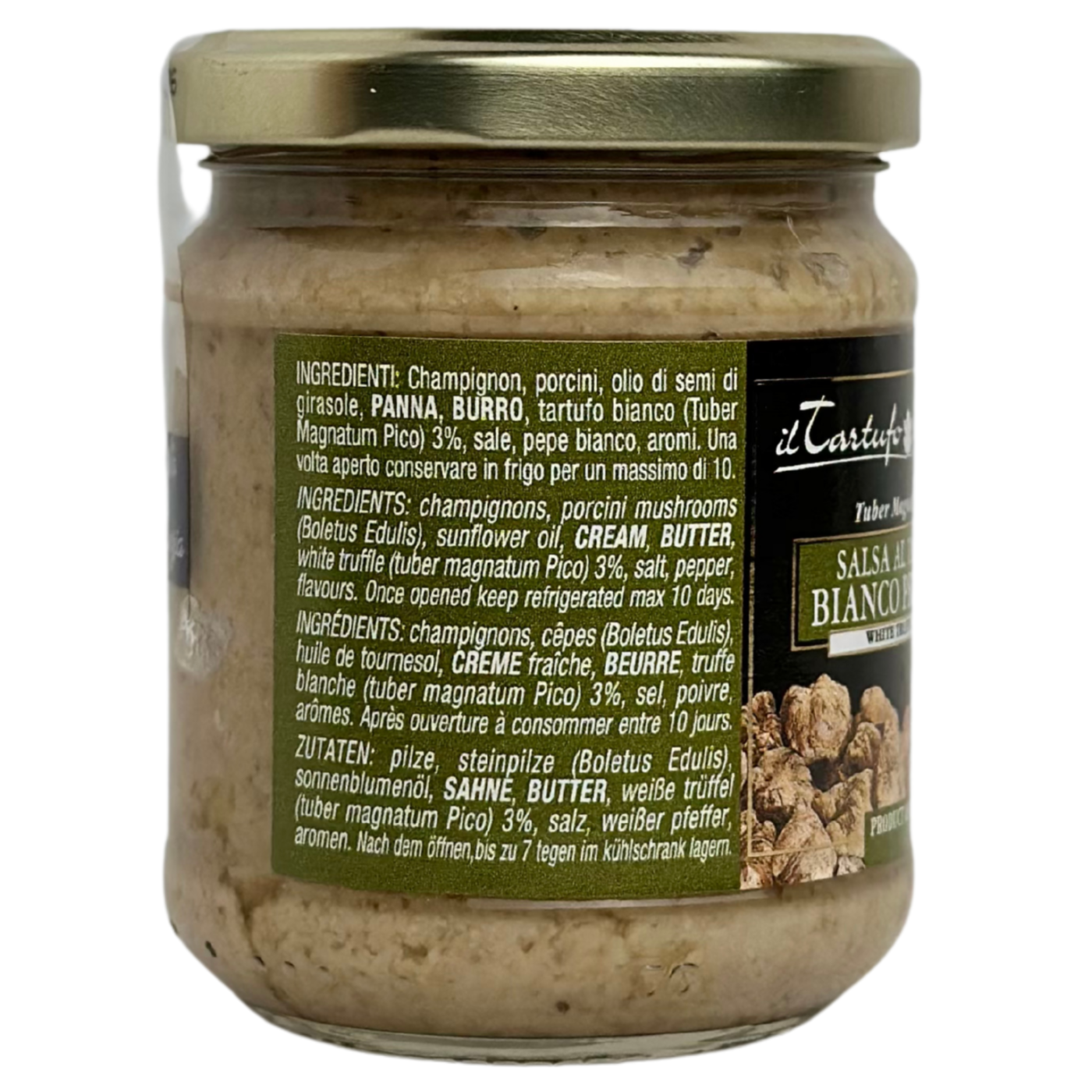 Соус з білим трюфелем володіє яскравим, насиченим смаком і тонким ароматом трюфеля. Соус широко застосовується в середземноморській кухні, його намазують на брускетту, свіжий багет або крекер. Його також додають у салати, пасту і піцу. Навіть невелика кількість соусу песто з трюфелем, додана в звичайне картопляне пюре або рис здатна подарувати звичайній страві яскравий і ні з чим не порівняний смак і аромат.