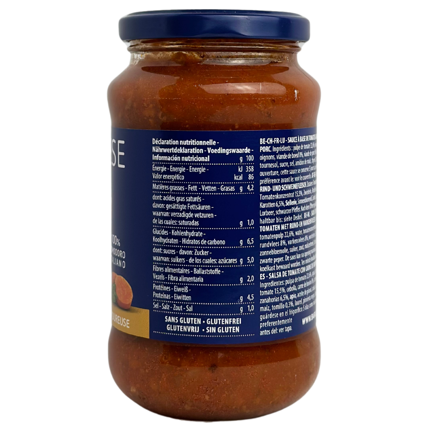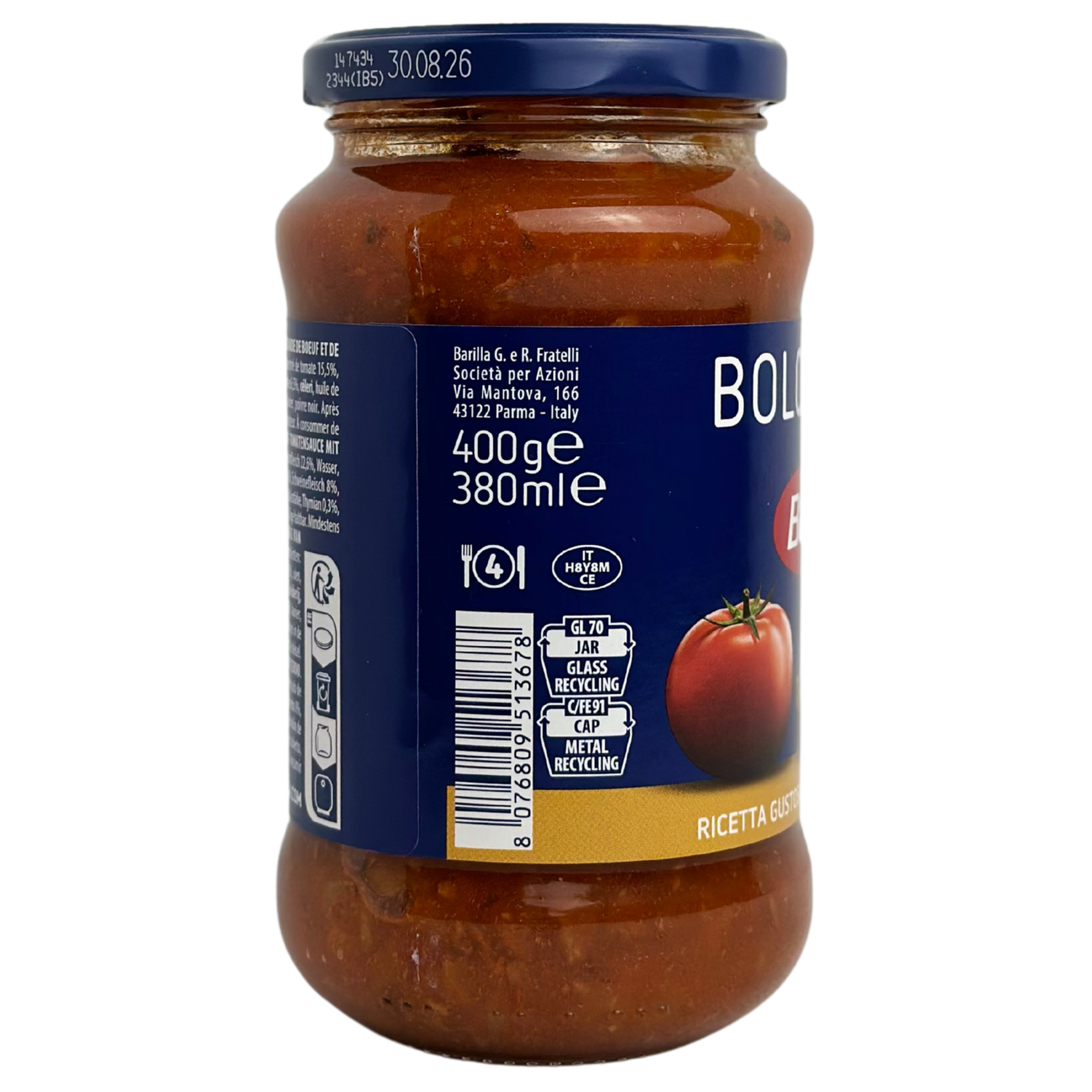 Соус Bolognese Barilla - класичне італійське болоньєзе, приготоване з відбірного м’яса, стиглих томатів, цибулі, моркви та ароматних спецій. Насичений смак і ніжна текстура роблять його ідеальним для пасти, лазаньї, запіканок або навіть як соус до овочевих страв. Натуральні інгредієнти дарують стравам справжній середземноморський аромат, а класичний рецепт дозволяє насолоджуватися багатим італійським смаком у кожній ложці.
