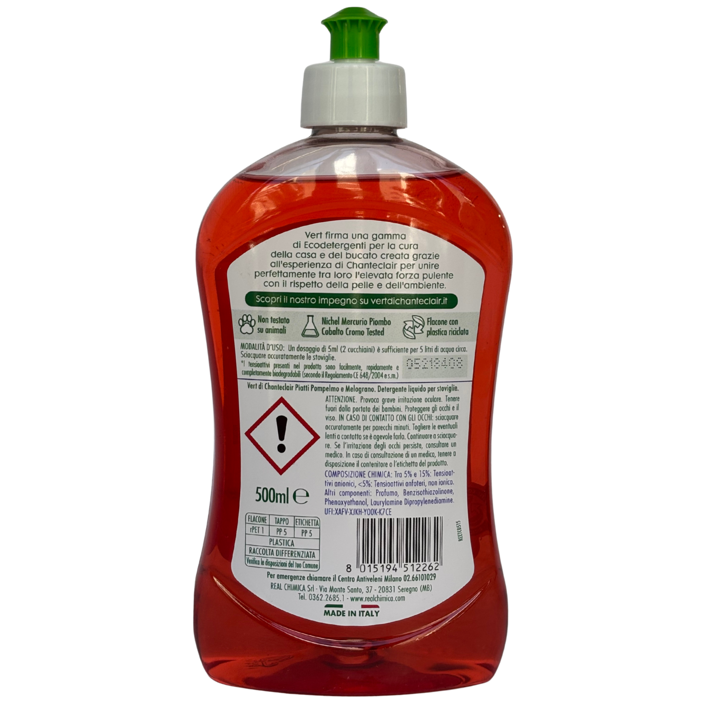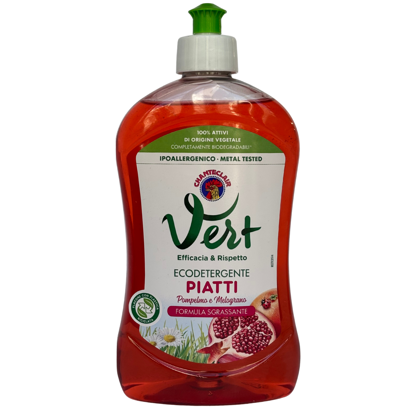 Vert Piatti Pompelmo e Melograno – засіб для миття посуду з ароматом грейпфруту, гранату та ромашки, який бездоганно вимиває посуд та не залишає розводів. Він концентрований, тому достатньо лише декількох крапель.