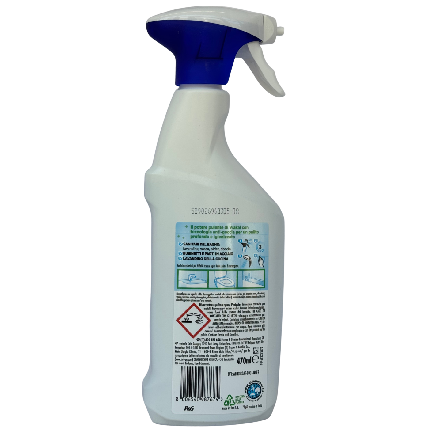 Засіб для очищення сантехніки Igienizzante Viakal - потужний засіб для догляду за ванною кімнатою та кухонною сантехнікою. Його ефективна формула одночасно видаляє бруд, мильний наліт, вапняний осад та сліди іржі, забезпечуючи чистоту та блиск кранів, душових кабін, раковин і ванн. Крім очищення, засіб має дезінфікуючий ефект, нейтралізує бактерії і мікроби на поверхнях, підтримуючи гігієну у всьому домі. Легкий у використанні, він економить час при щоденному прибиранні.