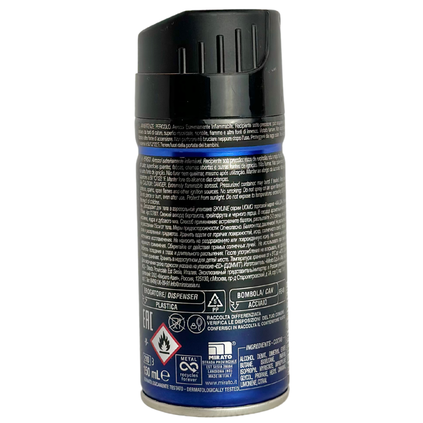 Дезодорант‑спрей для тіла чоловічий Skyline Malizia Uomo - це ефективний засіб для щоденного захисту від неприємного запаху та підтримки відчуття свіжості. Легка аерозольна формула швидко розпилюється, рівномірно вкриває шкіру та швидко висихає, не залишаючи слідів на одязі. Аромат поєднує чоловічі свіжі та терпкі ноти, що створюють відчуття чистоти і впевненості протягом дня.