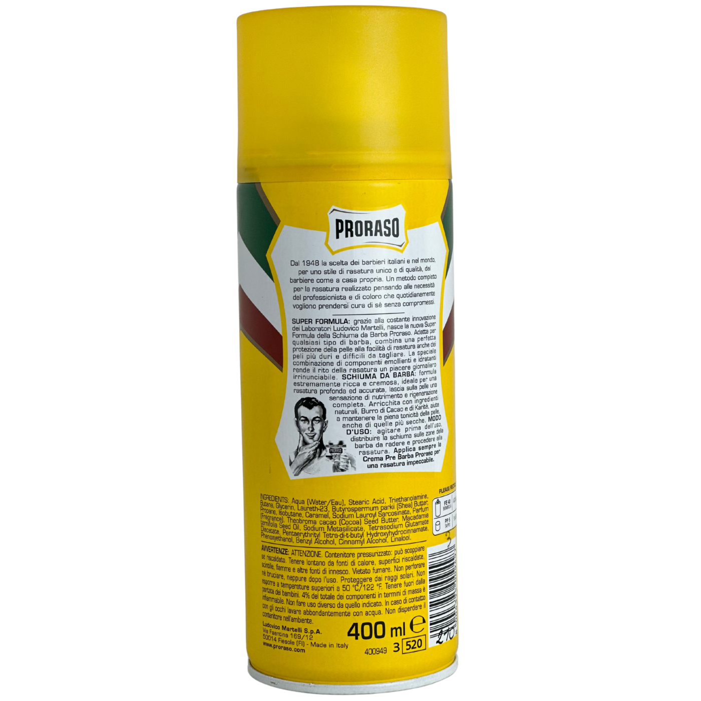 Піна для бриття з маслом какао і каріте Pelli secche con burdo di cacao e karite Proraso 400ml