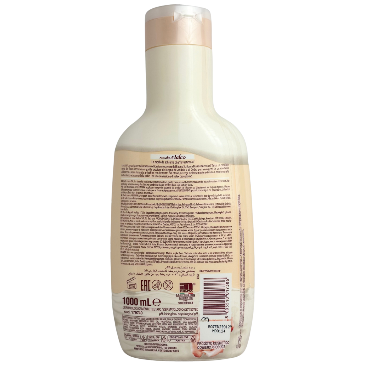 Піна для ванни з тальком Bath foam Nuvola di talco Malizia Bagno Schiuma 1l