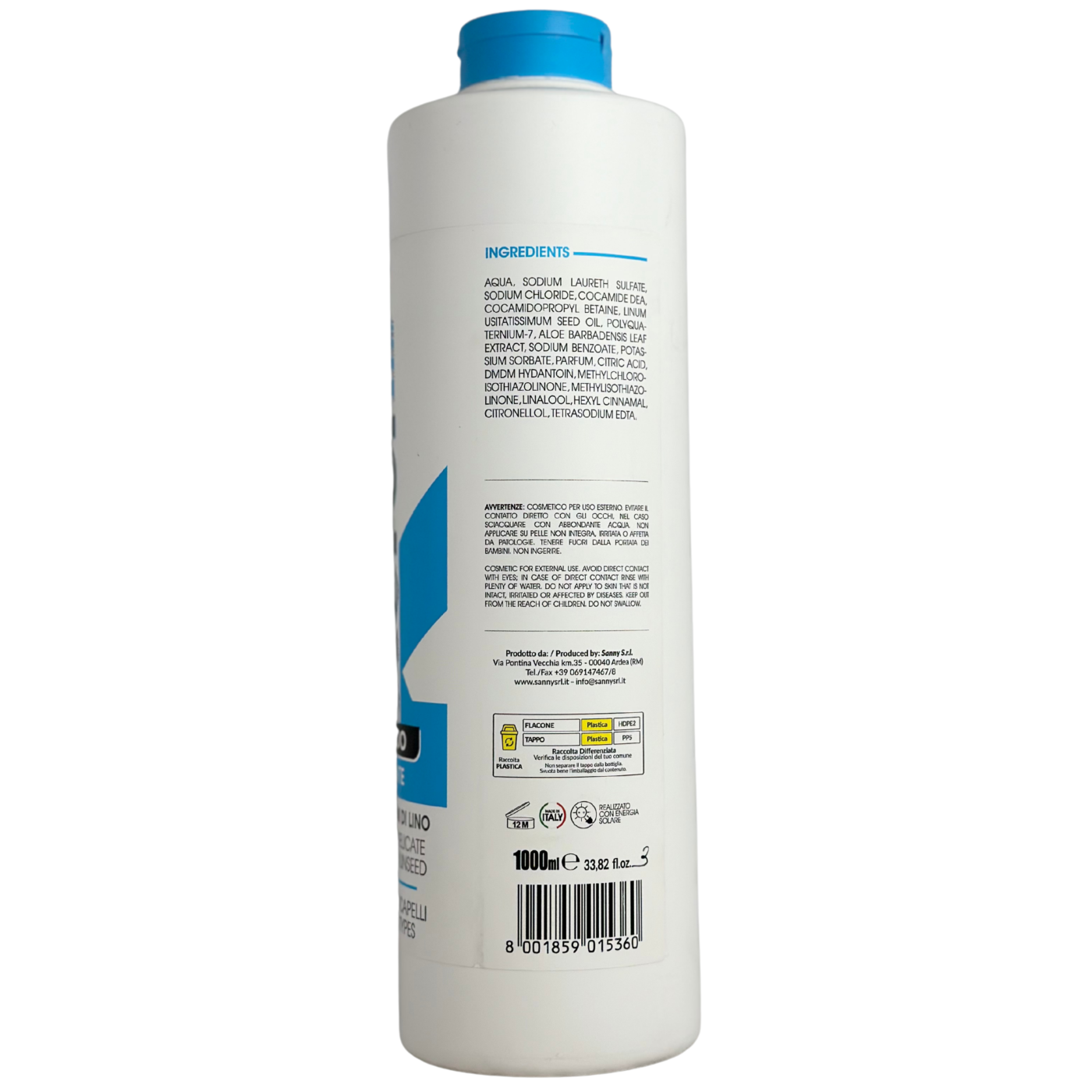 Шампунь делікатно очищає шкіру голови та зволожує волосся, збагачений лляною олією.