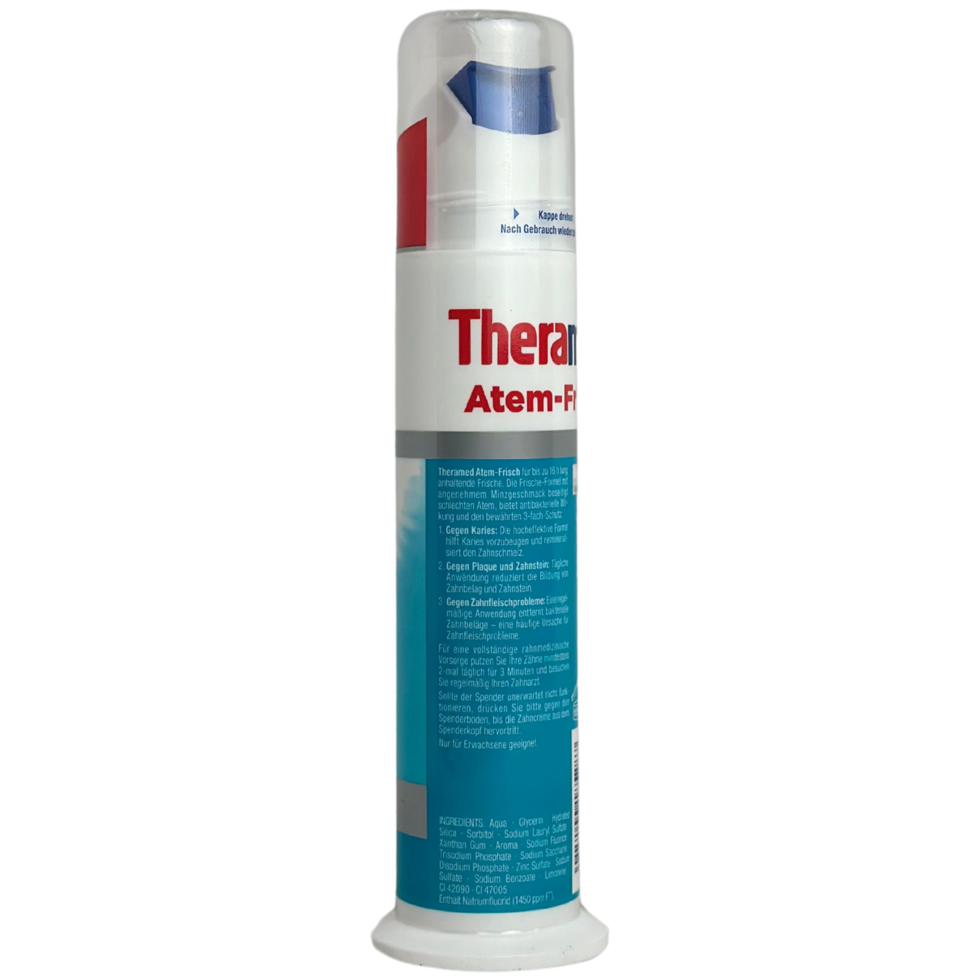 Зубна паста Atem‑frisch Thera‑Med - спеціальний засіб для свіжого подиху та ефективного щоденного догляду за ротовою порожниною. Її формула м’яко очищає зуби, видаляє зубний наліт і допомагає підтримувати свіжість подиху на тривалий час. Паста не подразнює ясна, зміцнює емаль і створює відчуття чистоти після кожного чищення, роблячи догляд за зубами приємним і комфортним.
