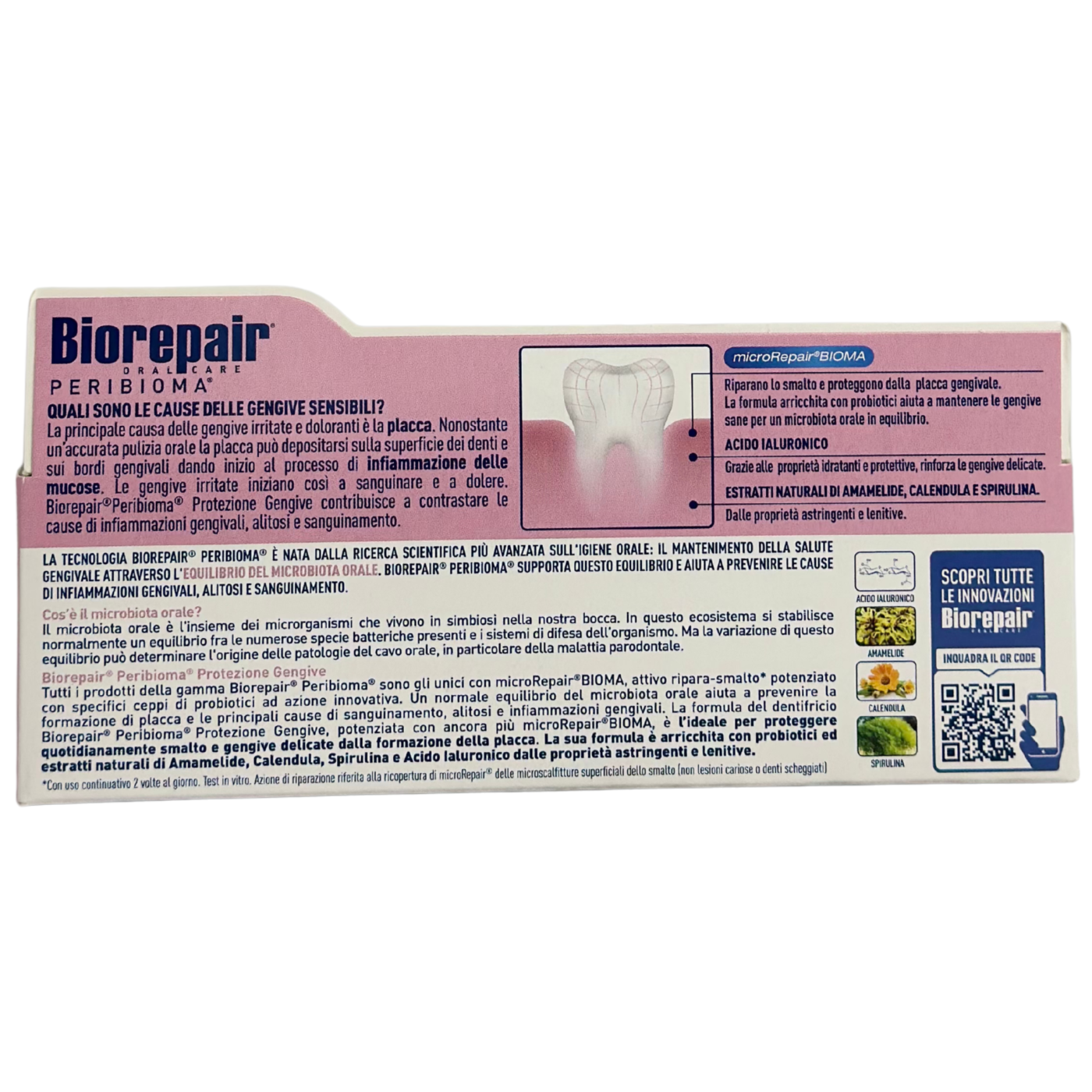 Зубна паста проти запалення ясен Peribioma Pro Gengive+ Biorepair - спеціальна зубна паста, що допомагає доглядати за яснами та підтримувати їхнє здоров’я. Формула з інноваційними мікрочастинками гідроксіапатиту дбайливо очищає зуби, зменшує подразнення ясен і сприяє відновленню природної мінеральної структури емалі. Паста також сприяє зниженню чутливості тканин ясен, допомагає боротися з бактеріальним нальотом і робить чищення зубів приємним завдяки ніжній текстурі.