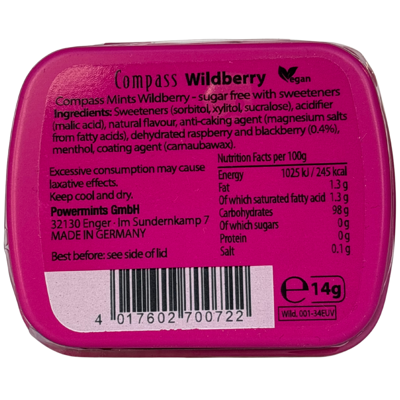 Компактна упаковка дозволяє брати їх із собою куди завгодно, забезпечуючи швидке та приємне освіження в будь-якій ситуації. Wild Berry Compass — це якість, свіжий смак і задоволення в кожній цукерці.