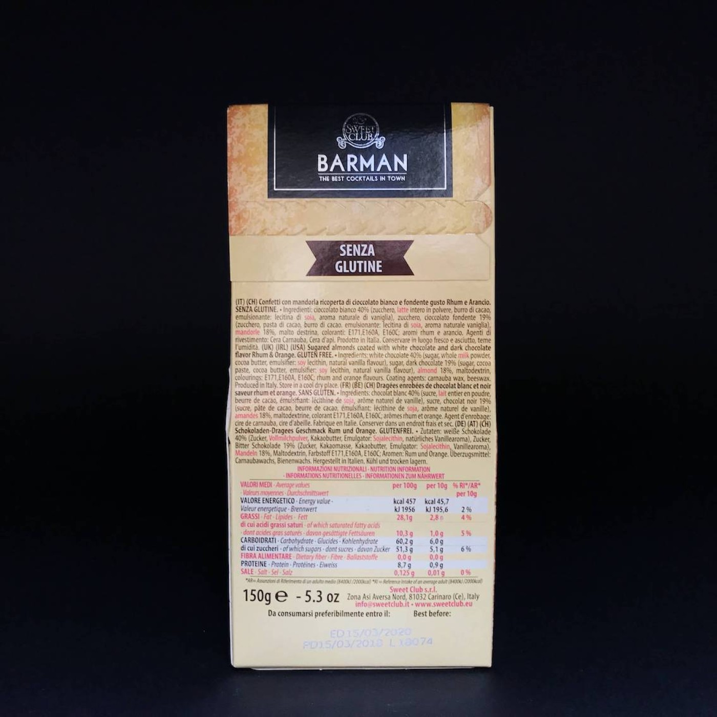 Лінійка Barman для компанії Sweet Club представляє драже зі смаками популярних коктейлів, але без додавання алкоголю. Rhum & Orange – це мигдаль в смачному шоколадному кремі зі смаком рому та апельсину. Яскрава упаковка одразу привертає увагу, а такий цікавий смак справді приємно здивує.