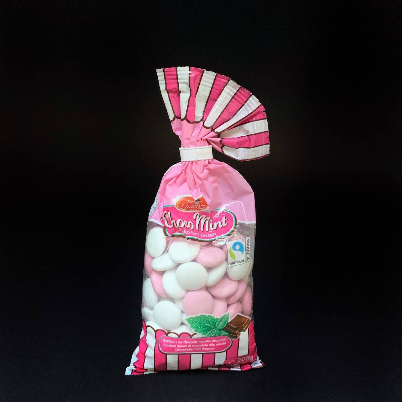 Choco Mint – неймовірно смачне драже з шоколадно-ментоловим смаком, вкрите білою та рожевою цукровою глазур’ю. Поєднання шоколаду з м’ятою неодмінно припаде до душі, а «родзинкою» стала хрустка солодка оболонка. Маленькі цукерки від Sir Charles особливо полюбляють в Європі, як і всю продукцію від виробника, наприклад, «банани в шоколаді», адже він приділяє неабияку увагу якості та смаку. До того ж, всі ласощі оригінальні, яскраві та смачні.
