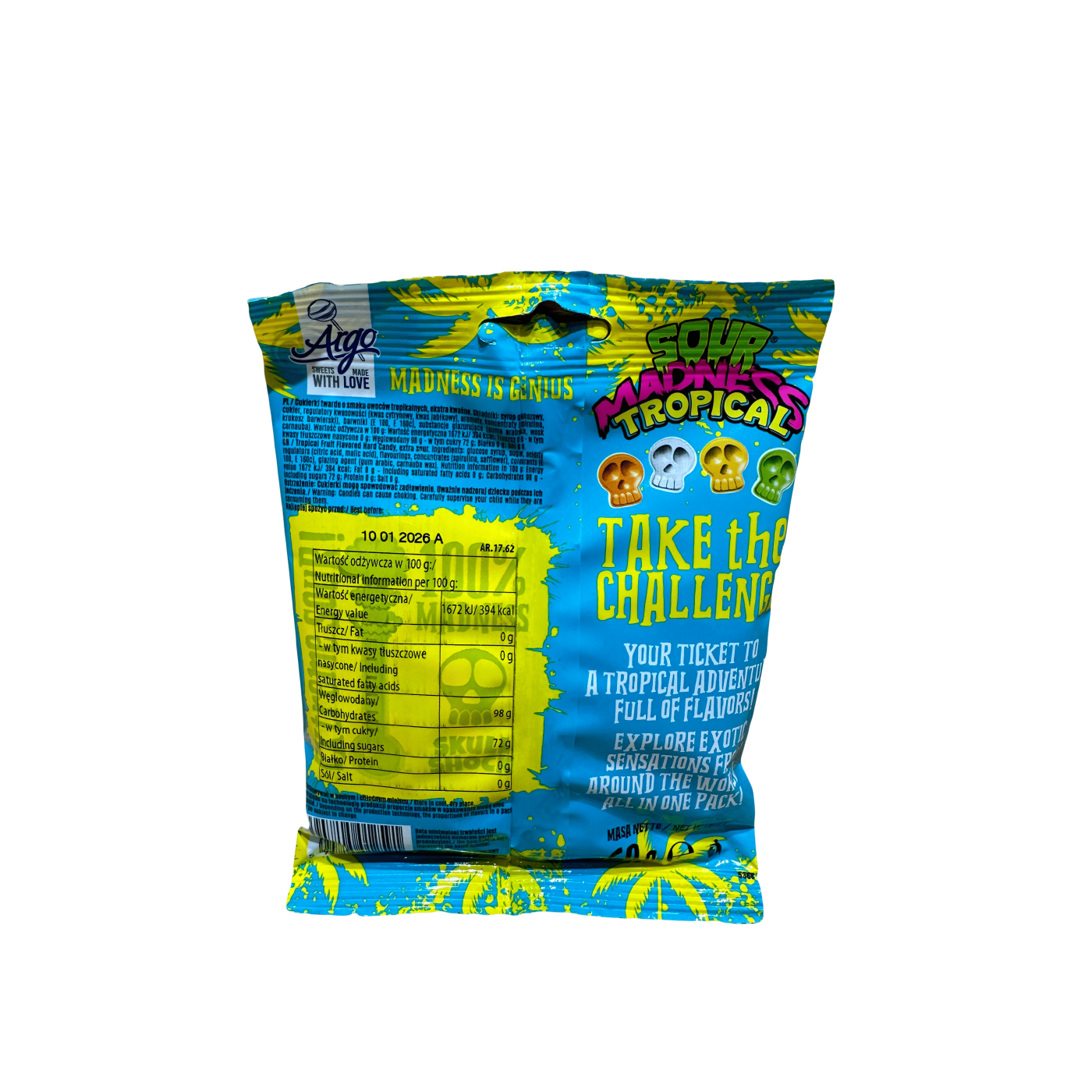 Льодяники кислі Sour Madness Tropical Skull Shock 60g