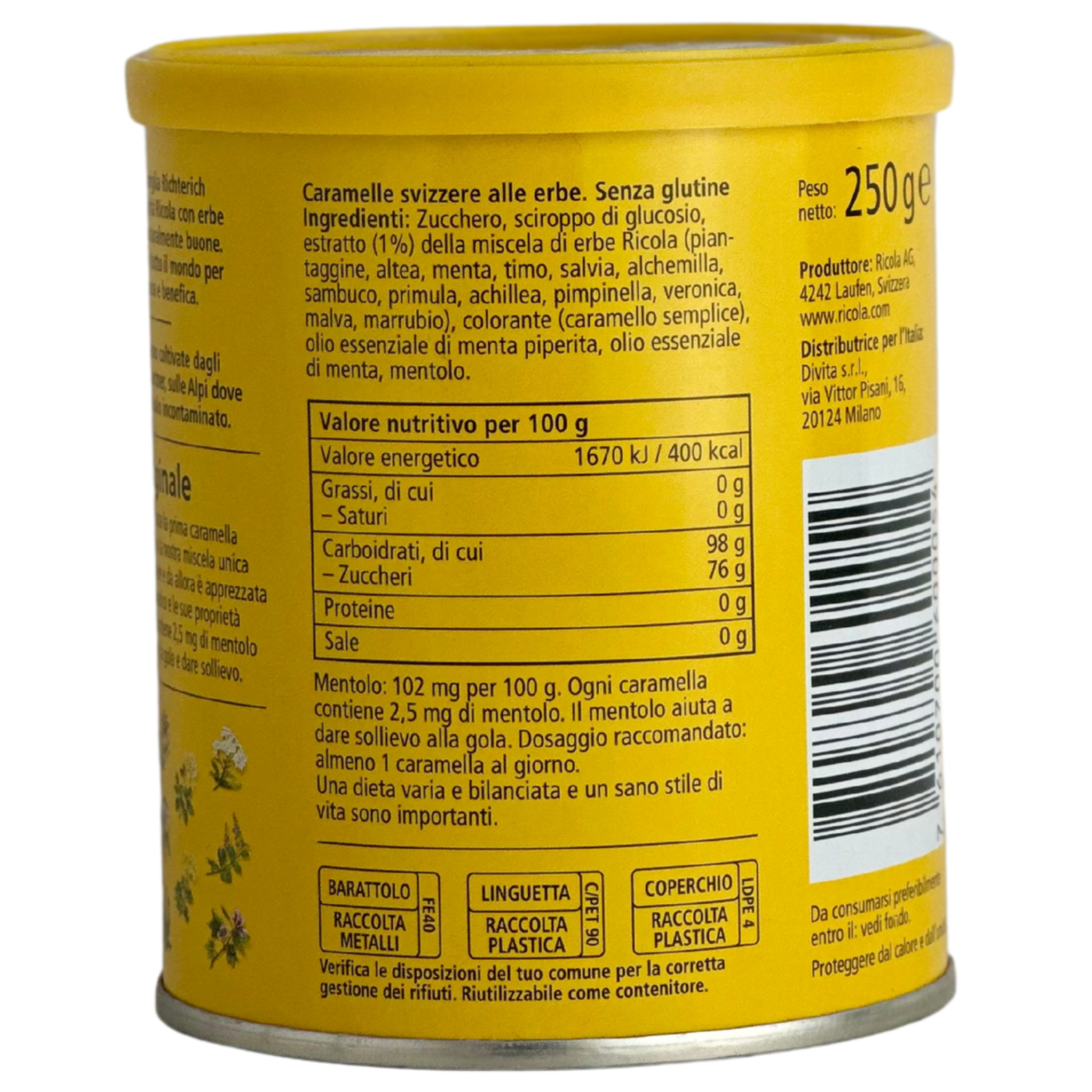 Льодяники Ricola Cristallo di zucchero виготовлені виключно з натуральних інгредієнтів. Містять цукор.