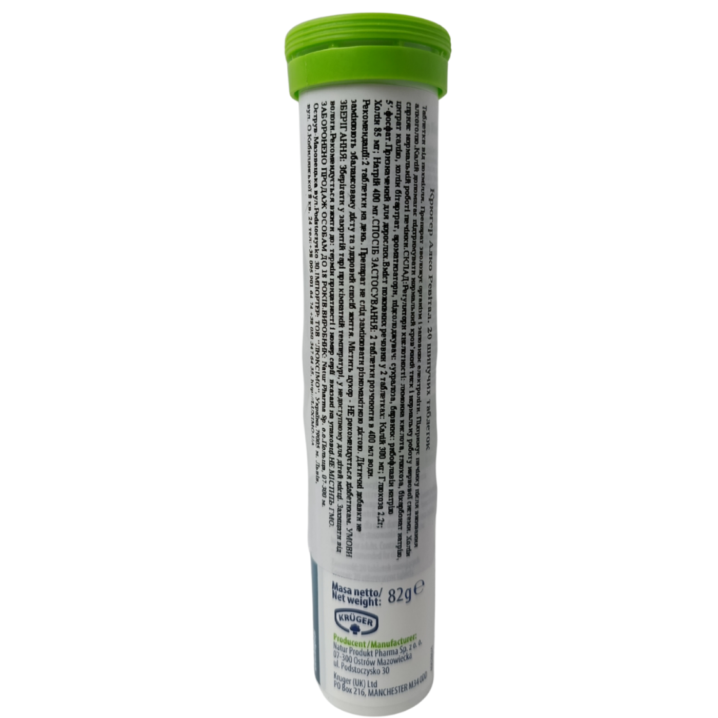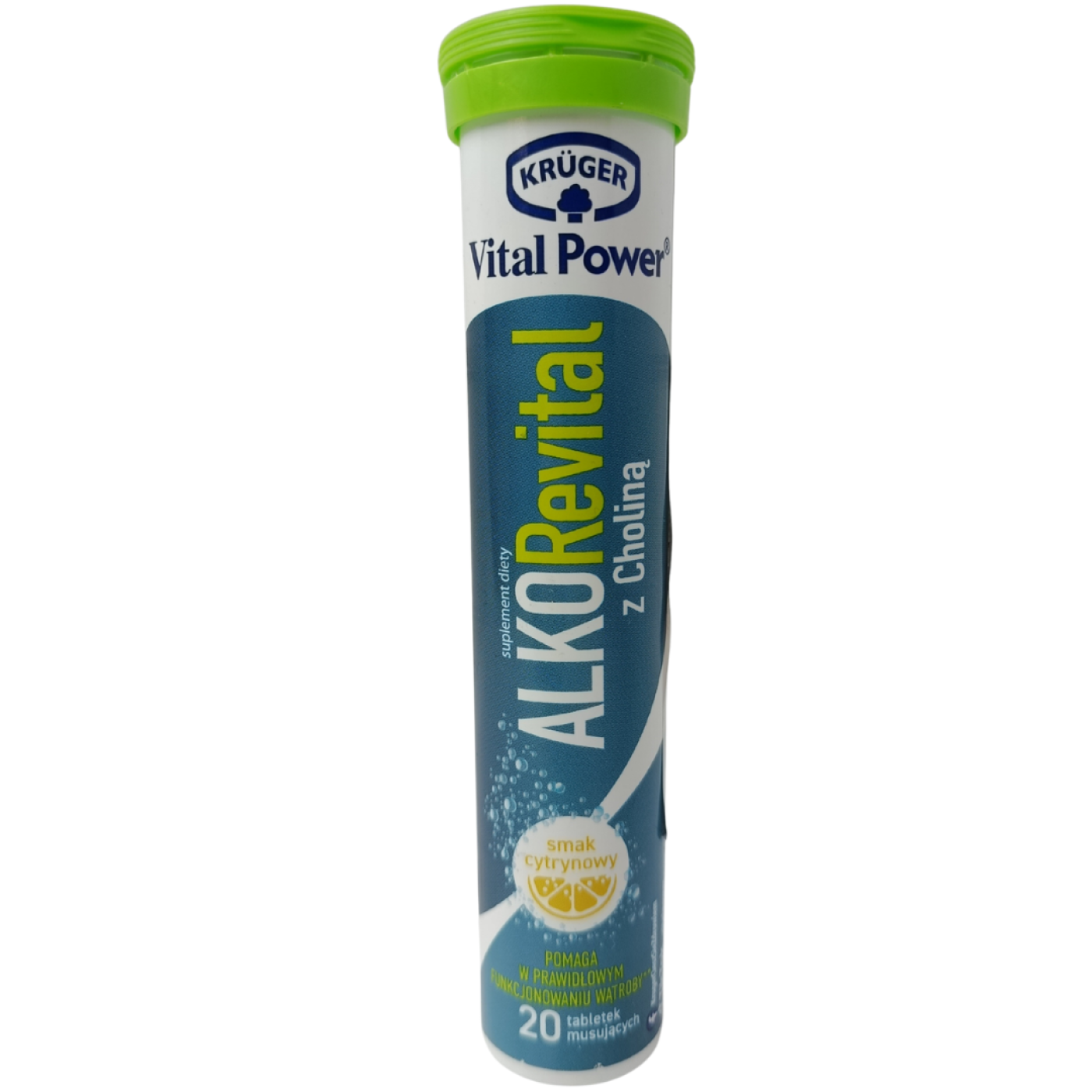 Шипучі таблетки Alko Revital Vital Power Kruger (20 шт.) - спеціальний комплекс у шипучій формі, створений для підтримки організму при виведенні продуктів розпаду алкоголю та відновленні енергетичного балансу після свят чи вечірок. Таблетки містять вітаміни, мінерали та компоненти, що допомагають підтримувати нормальний обмін речовин, зменшувати відчуття втоми та покращувати загальне самопочуття. Зручно розчиняються у воді й підходять для щоденного використання в періоди підвищеного навантаження на організм.