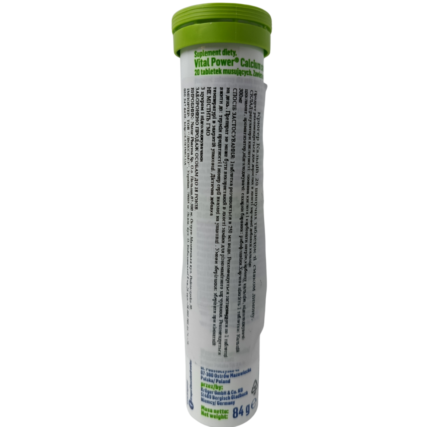 Шипучі таблетки Кальцій Calcium Vital Power Kruger 20шт 84g