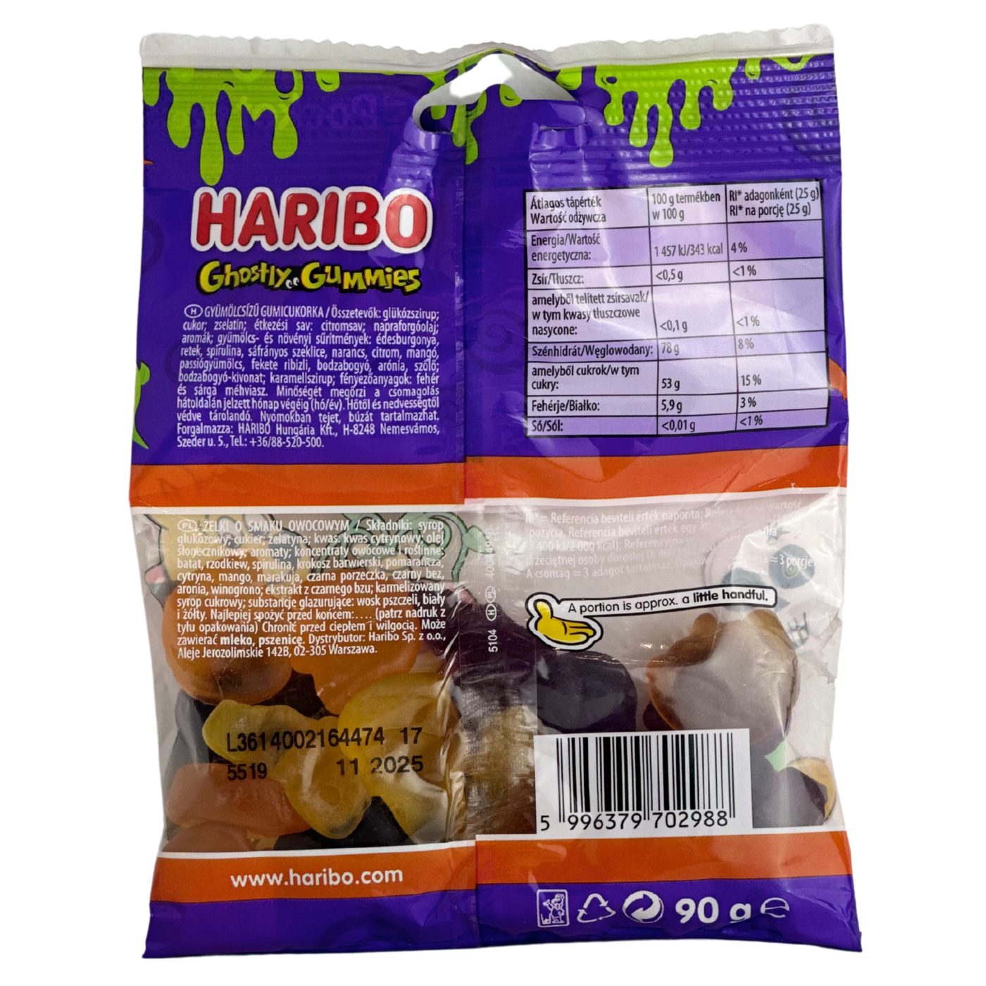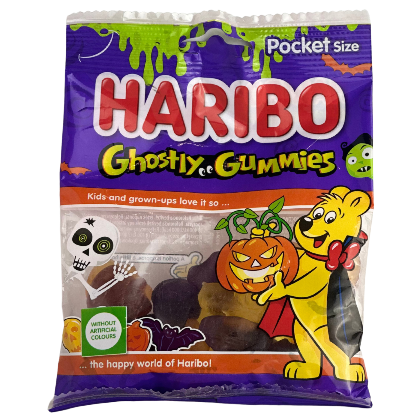 Желейні цукерки Ghostly Gummies Haribo 90 г — це ідеальний спосіб додати трохи магії і веселощів до вашого Хелловіну! Ці кумедні желейки у формі привидів стануть справжньою знахідкою для любителів солодощів. Кожен шматочок виготовлений з ніжної, жувальної текстури, яка тане у роті, даруючи насолоду з першого укусу. Вони поєднують у собі солодкі та легкі фруктові смаки — від соковитої полуниці до освіжаючого лимона, що дозволяє насолоджуватися різноманіттям в одному пакеті.