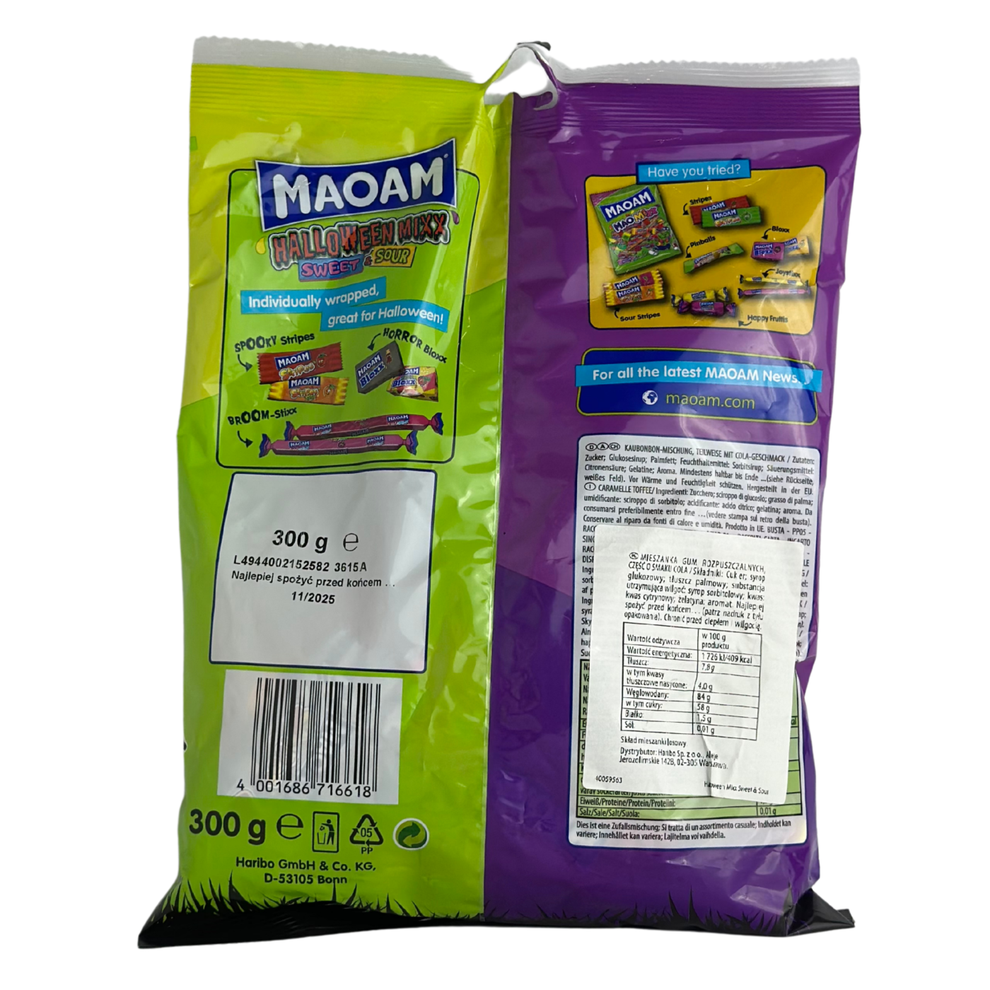 Жуйки з фруктовими смаками Halloween Mixx Maoam 300 г — це захоплююча солодка пригода, яка додає веселощів і радості до святкування Хелловіну! Упаковані в барвисту упаковку, ці жуйки відрізняються не лише яскравими кольорами, а й неймовірно різноманітними фруктовими смаками, що моментально піднімуть настрій.