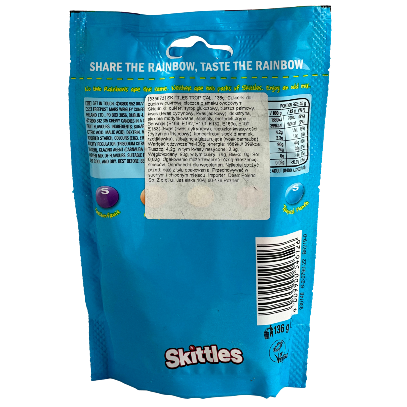 Скітлс виготовляється вже більше 100 років, за цей час величезна кількість споживачів встигла закохатись в їхній смак, що й не дивно. Це чудовий вибір для вечірки, перегляду фільму, прогулянки та посиденьок з друзями.