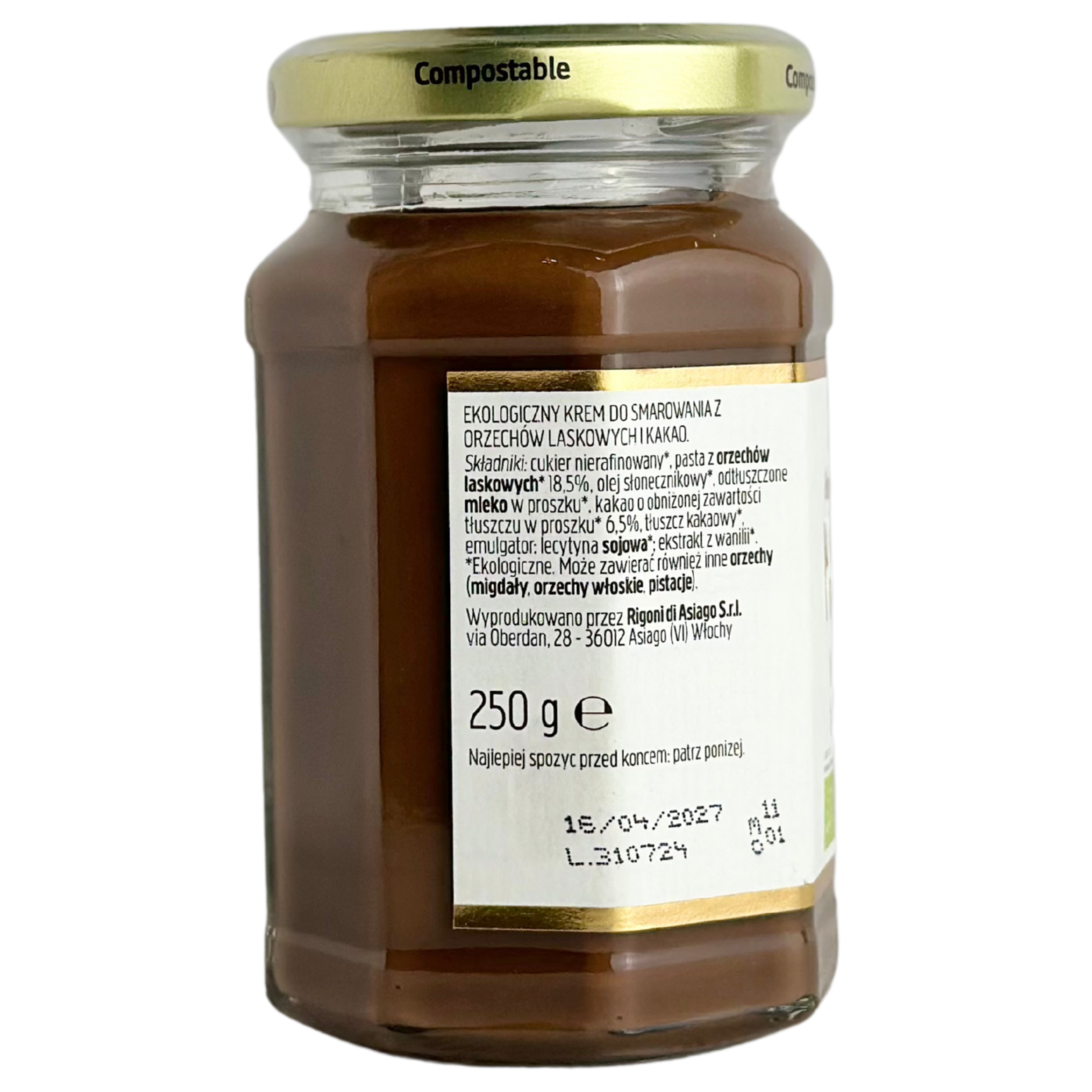 Фундучна паста з какао Nocciolata Rigoni di Asiago 250g- це смакота для маленьких поціновувачів та не лише. Ця органічна шоколадно - горіхова паста є ніжним поєднанням молочного шоколаду та якісних відбірних горіхів. З її допомогою можна створити неповторні сніданки з чендвічами та принципи отуввти десерти або ж додавати в молочні коктейлі. Таку шоколадну пасту можна давати маленьким поціновувачам солодкого адже вона не містить штучних добавок та виготрвоена з натуральних інгредієнтів. Смакуйте та насолоджуйтеся.