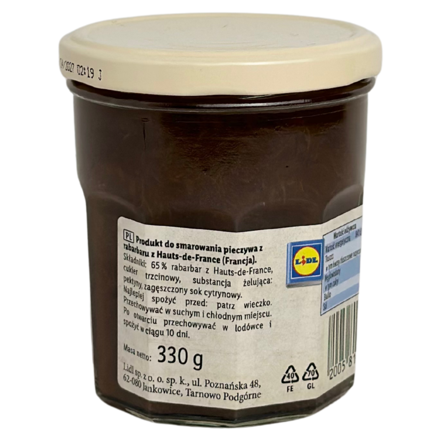 Натуральний конфітюр із ревеню - ідеальна пара до овечих і козячих сирів. Також це чудове частування до сніданку або чаювання. Має особливо ніжну текстуру та насичений смак, ідеально поєднується з скибочкою підсмаженого хліба, ранковими тостами, вишуканими сирами, м'ясними нарізками та різноманітною домашньою випічкою.
