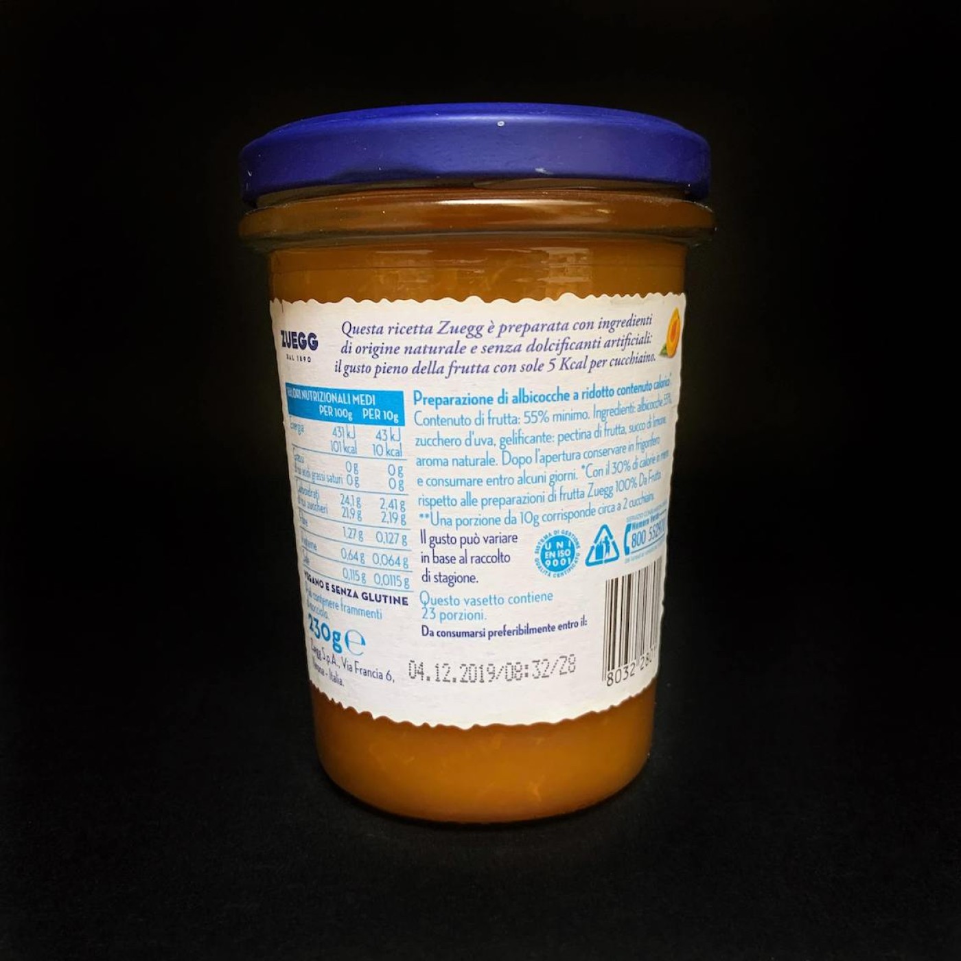 Zuegg Leggera Albicocche – справжня знахідка для усіх, хто рахує калорії та надає перевагу натуральним продуктам. Уявіть, що в двох чайних ложках всього 10 калорій! Він містить відбірні абрикоси (мінімум 55%), виноградний цукор, фруктовий пектин та лимонний сік. Жодних штучних підсолоджувачів та шкідливих інгредієнтів. До того ж, абрикосовий конфітюр можна споживати веганам і всім, хто дотримується безглютенової дієти.