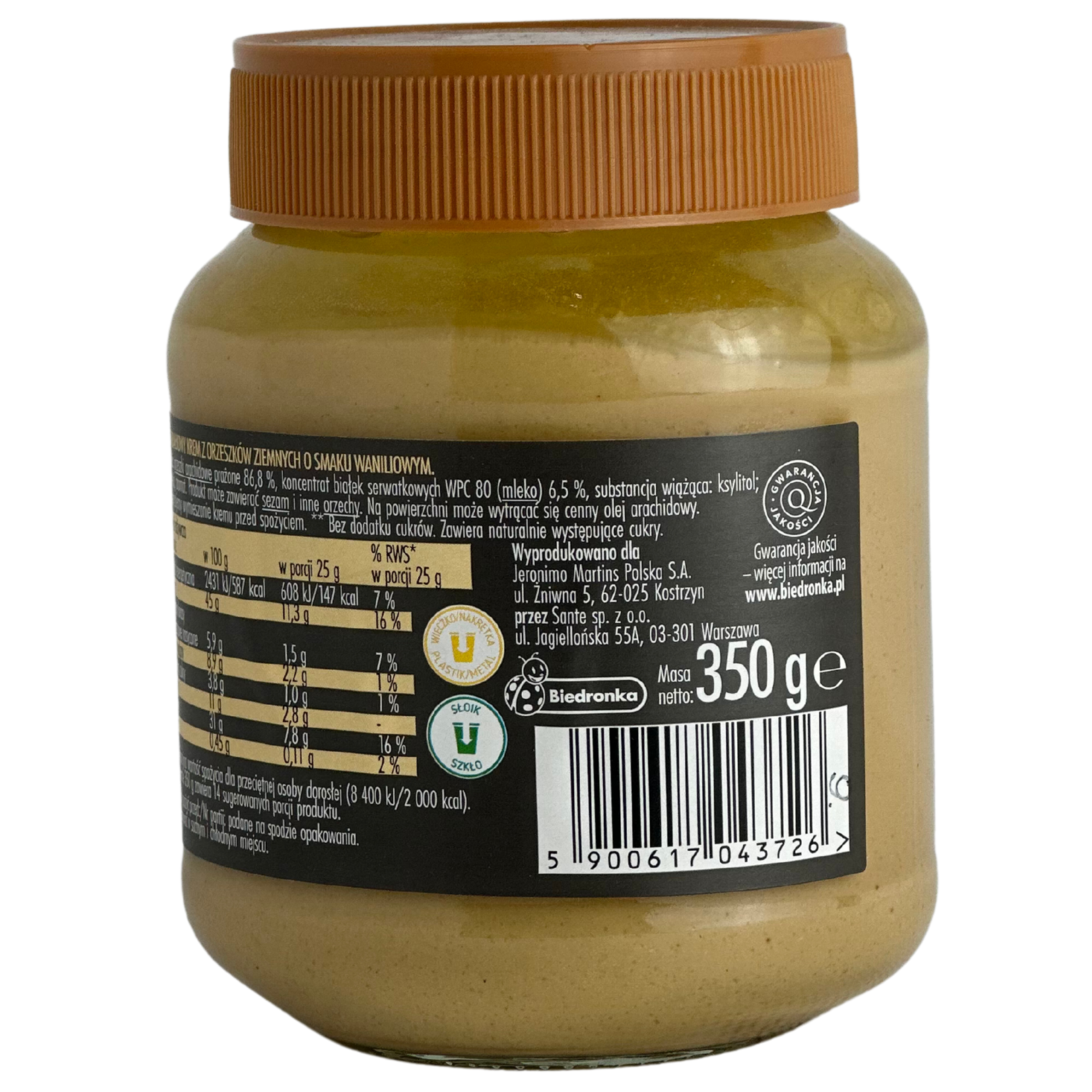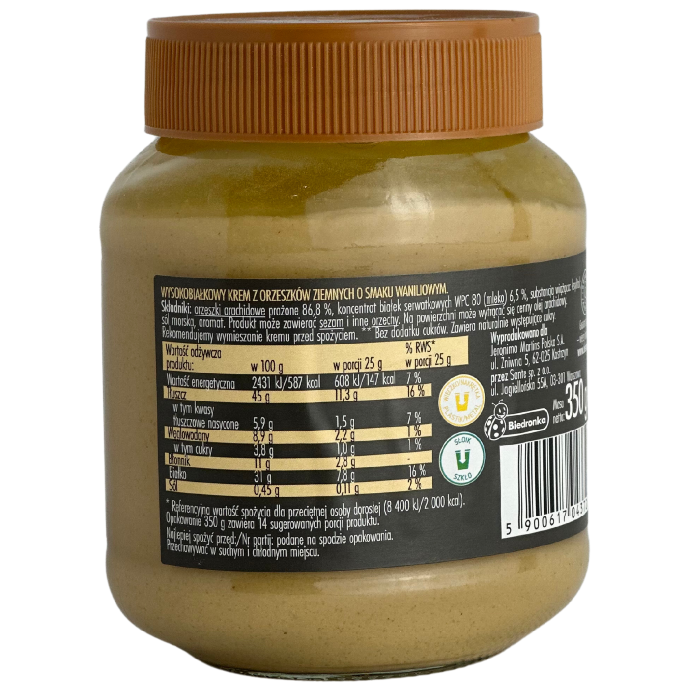 Високобілкова арахісова паста без цукру зі смаком ванілі, яка містить 31 г білка в 100г продукту. Вміст арахісу у пасті становить 86,8%, а також концентрат сироваткового білка 6,5%. Чудово доповнить раціон людей, які ведуть активний спосіб життя, спортменів і не тільки. Ідеально густа, однорідна по текстурі паста, прекрасно смакуватиме до ранкових тостів, млинців та панкейків.