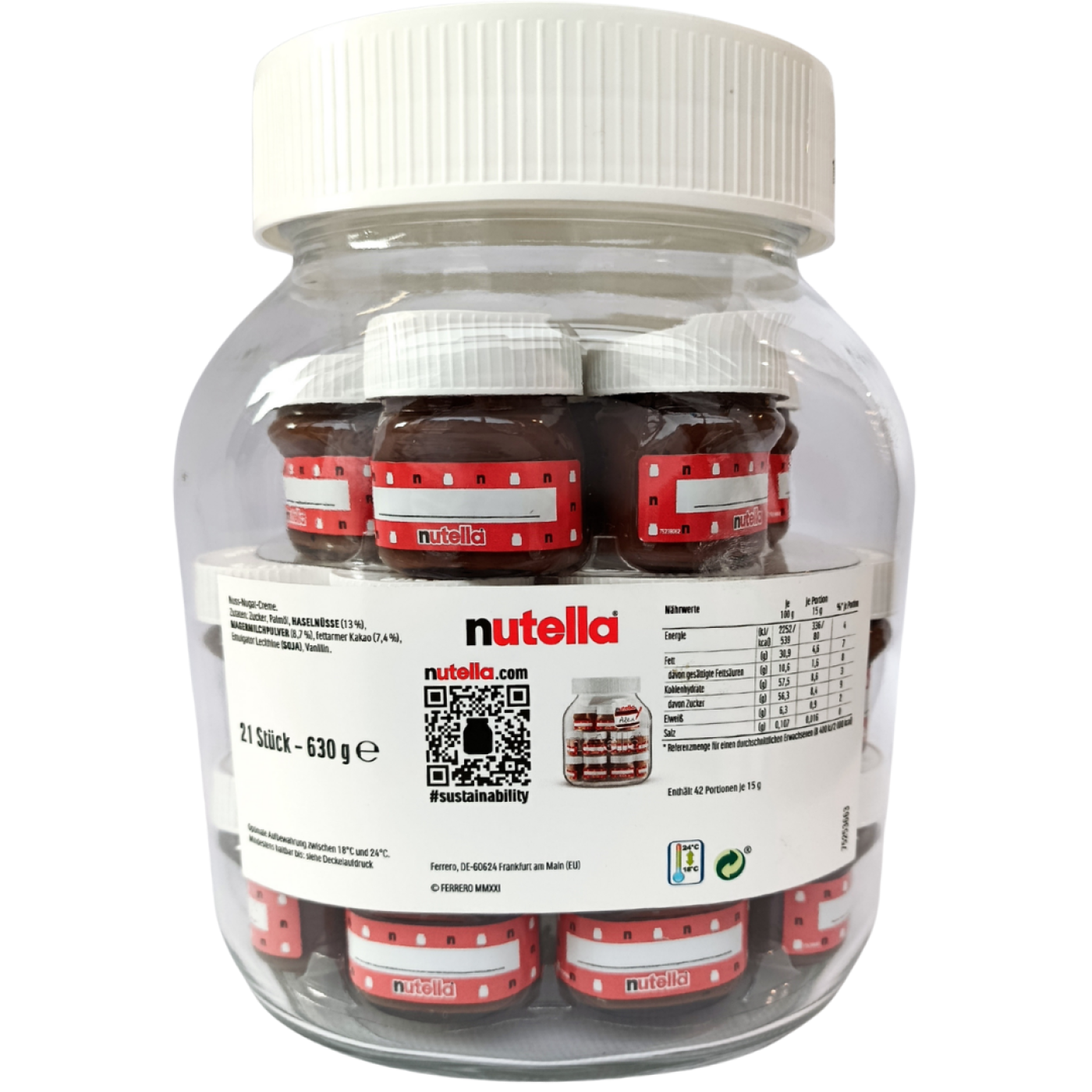 Шоколадно-горіхова паста Nutella Friends Edition від Ferrero у форматі 21 штук та вагою 630 г - це ідеальний варіант для тих, хто любить ділитися смаком з друзями та близькими. Кожна штука містить ніжну кремову пасту з багатим смаком шоколаду та горіхів, яка додає радості кожному ковтку. Ця особлива "Friends Edition" збирає разом ваші улюблені смаки в єдину палітру насолоди, створюючи неповторний смаковий досвід. Зручна упаковка забезпечує зручність та легкість у використанні, дозволяючи насолоджуватися цими смаками разом із друзями у будь-який час. З Nutella Friends Edition ви можете насолоджуватися смаком разом зі своїми найближчими!