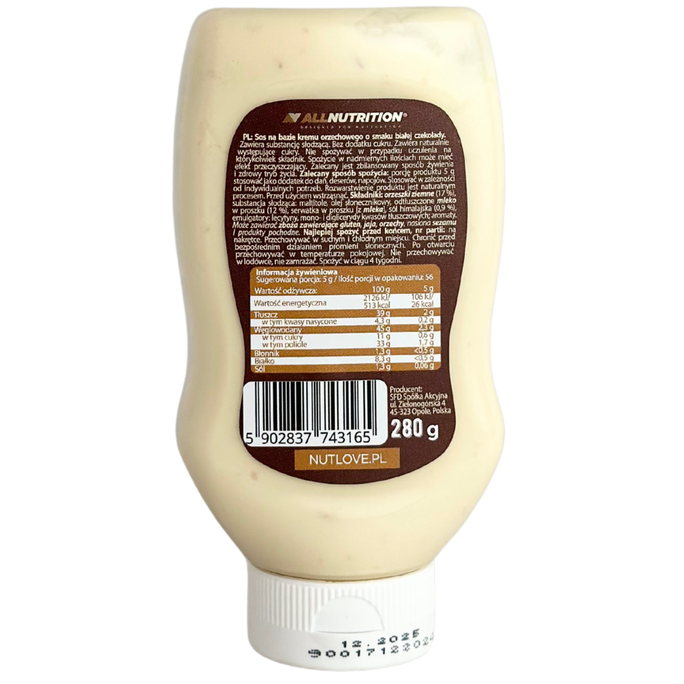 Топінг без цукру зі смаком білого шоколаду, арахісу і карамелі Sauce Nutlove White peanut choco AllNutrition 280g