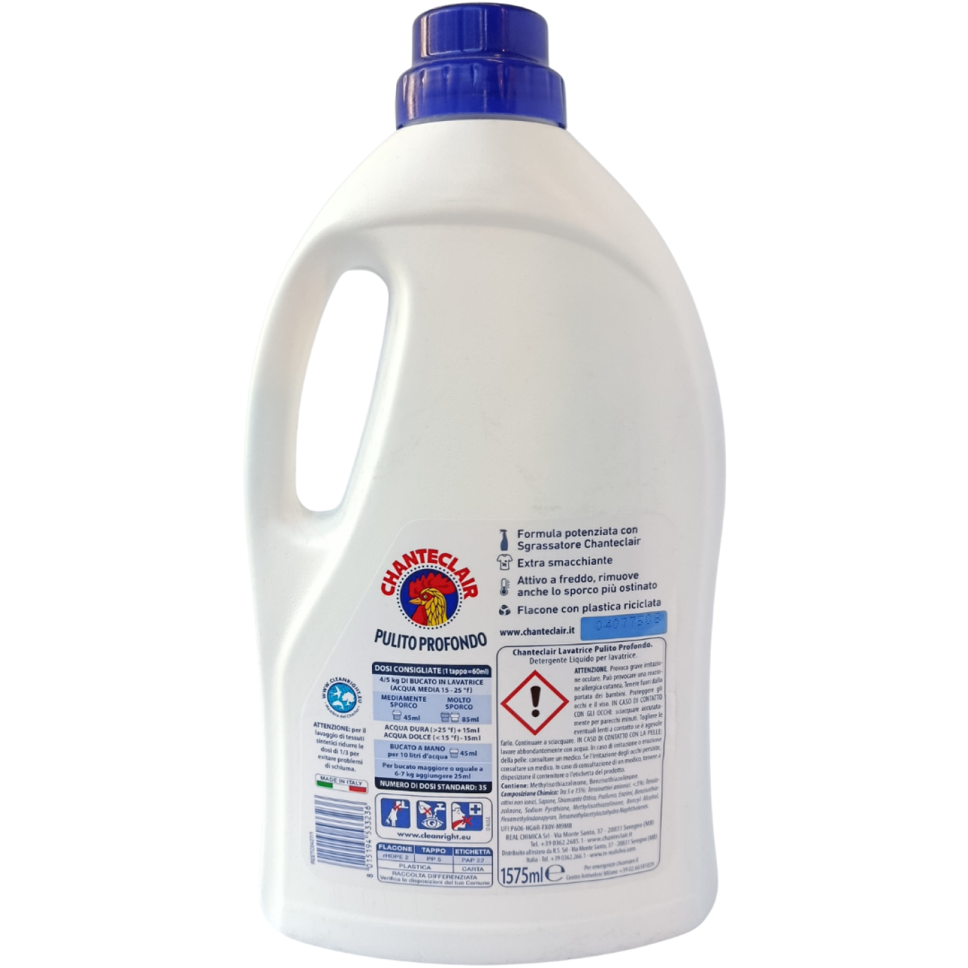 Гель для прання Chanteclair Pulito Profondo Extra Smacchiante — це засіб для глибокого очищення тканин із посиленим ефектом видалення плям. Формула розроблена так, щоб ефективно справлятися навіть зі стійкими забрудненнями, зберігаючи при цьому м’якість і свіжість речей після прання. Завдяки концентрованій формулі 1575 мл вистачає приблизно на 35 циклів прання, що робить засіб економним у використанні. Підходить для щоденного прання білого та кольорового одягу, добре працює як у холодній, так і в теплій воді. Гель легко розчиняється, не залишає слідів на тканині та дарує приємний, чистий аромат після прання. Ідеальний варіант для тих, хто хоче поєднати ефективність і дбайливий догляд за одягом.