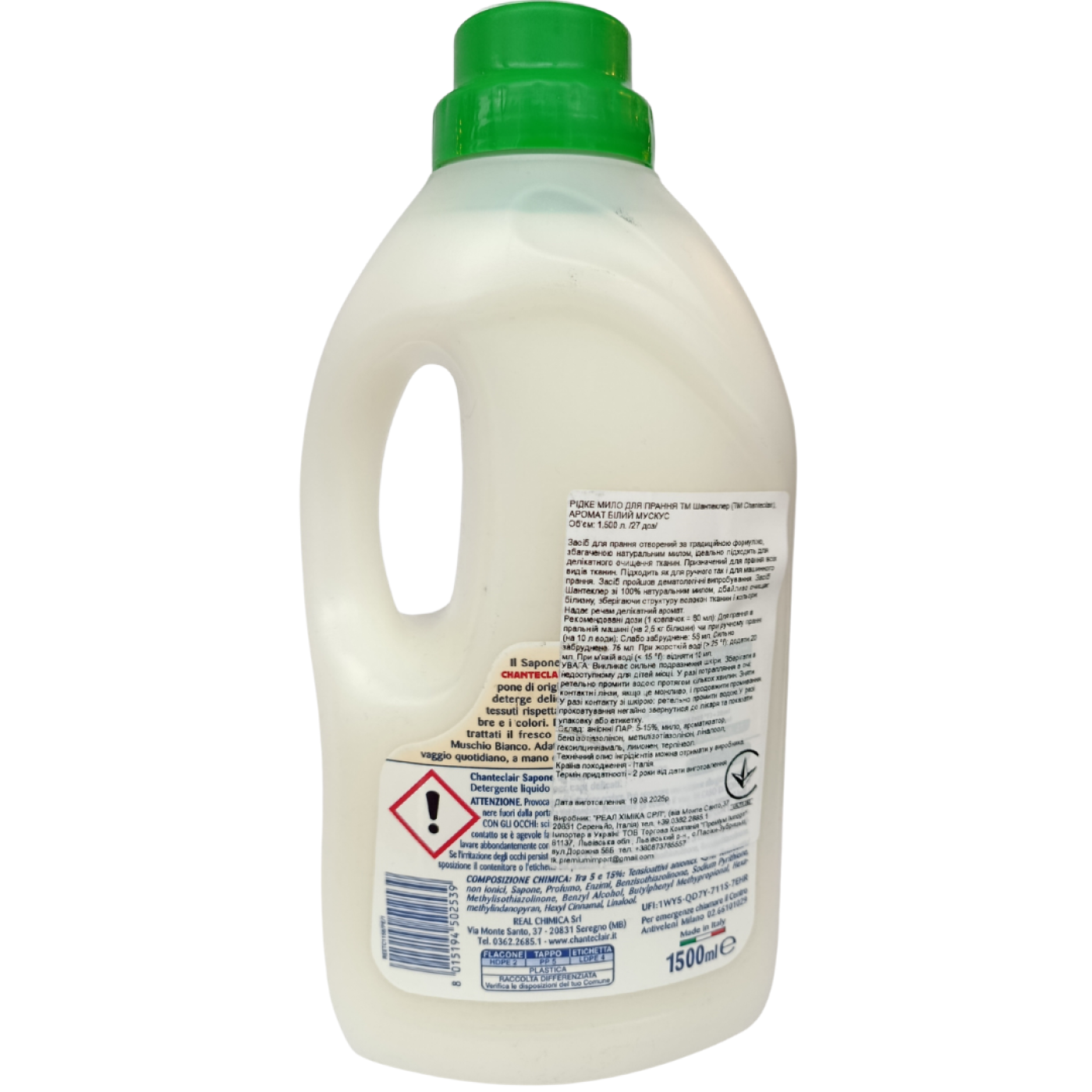 Гель для прання з господарським милом аромат білий мускус ChanteClair 1500ml