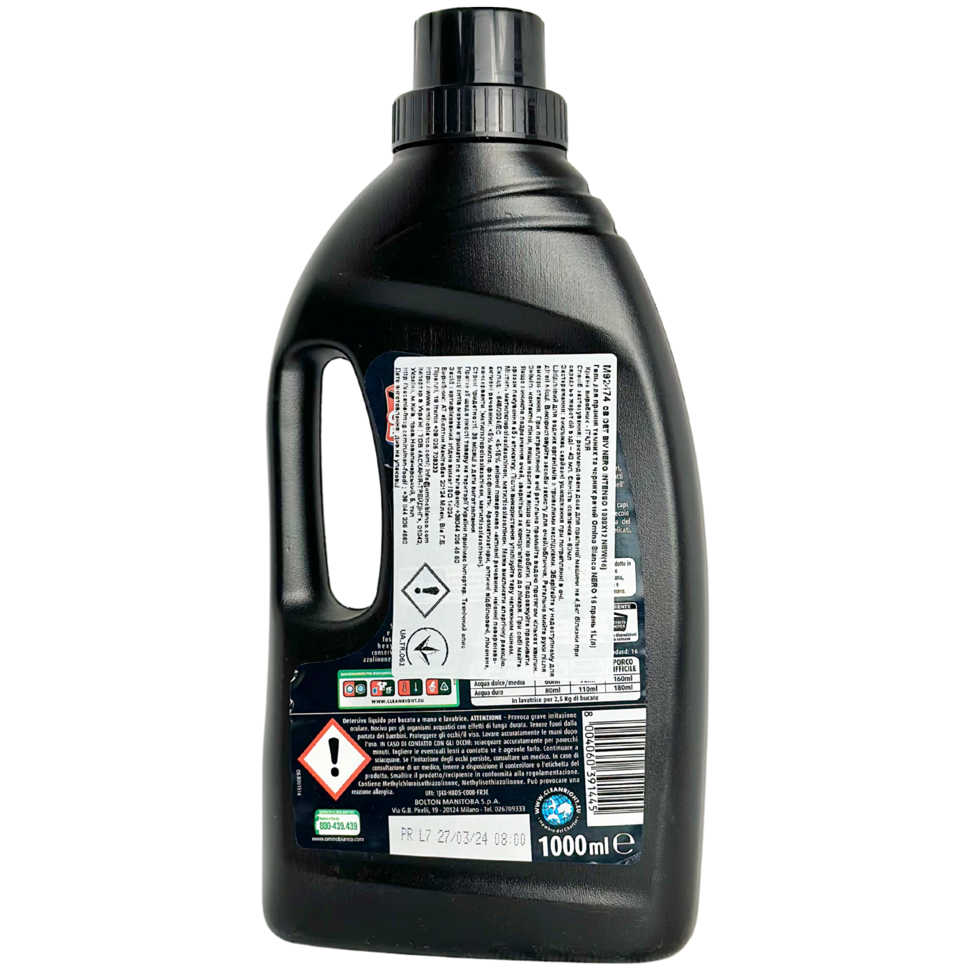 Гель для прання чорних речей Nero Intenso Omino Bianco ефективно очищає темні тканини, зберігає насиченість кольору та запобігає вицвітанню. Засіб робить тканини м’якими, приємними на дотик і залишає свіжий аромат після прання, забезпечуючи догляд за чорною білизною та одягом.