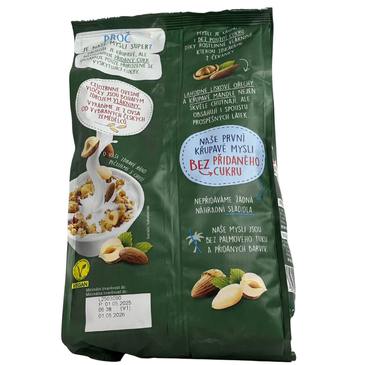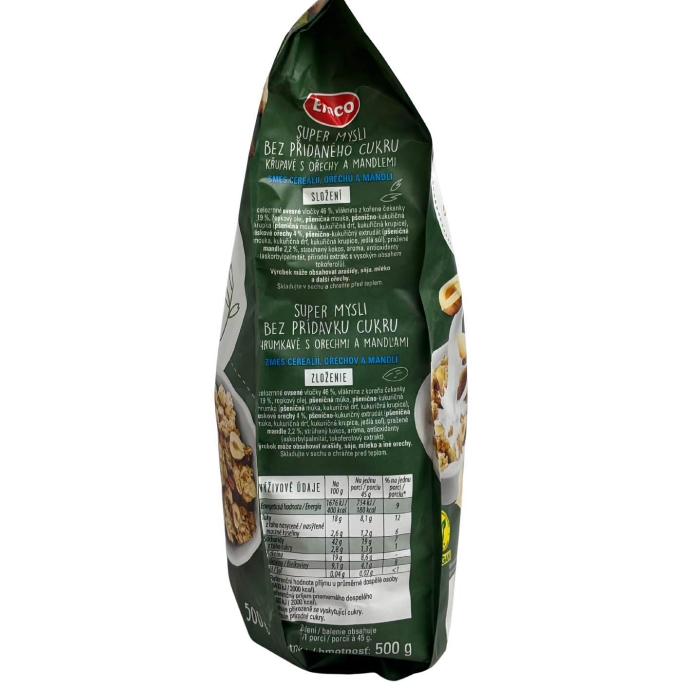 Гранола Emco без цукру з лісовими горіхами та мигдалем - хрумкий сніданок з натуральних злаків, багатих на клітковину, протеїни та корисні жири. Лісові горіхи та мигдаль додають вітаміни, мінерали та антиоксиданти, підтримують серце і енергію протягом дня. Ідеально для здорового старту ранку без доданого цукру.