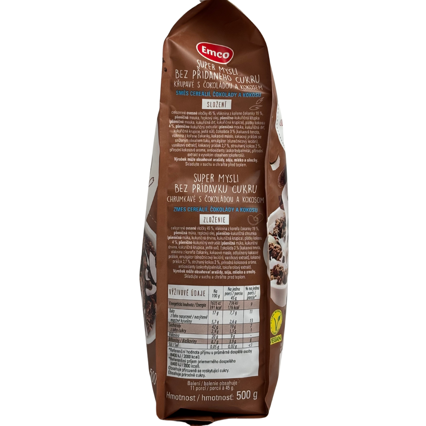 Гранола без цукру з шоколадом та кокосом Emco 500g