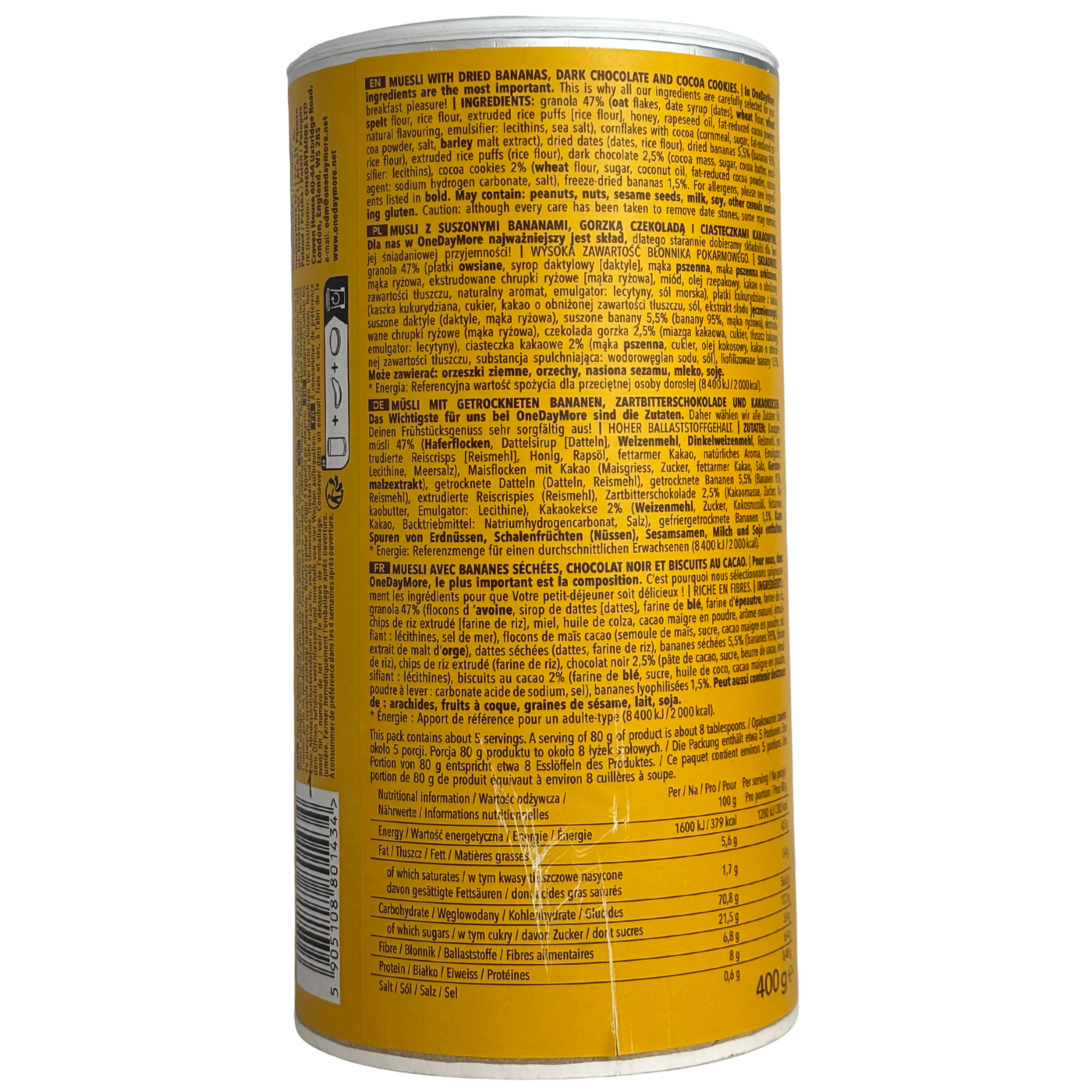Мюслі з бананом та шоколадом Muesli Bsnana&Chocolate One Day More 400g