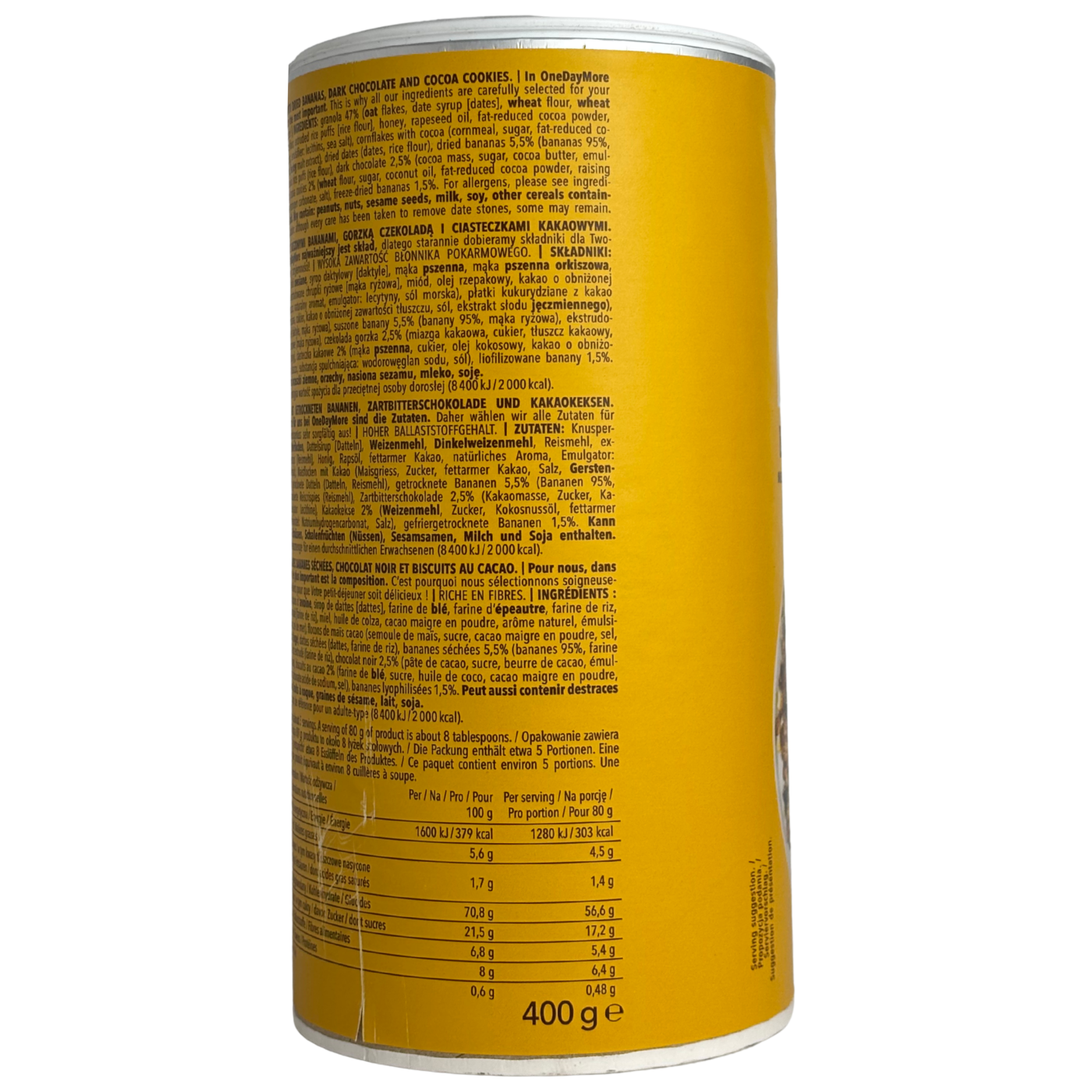 Мюслі з сушеним бананом, чорним шоколадом та печивом з како - це класичне та ідеальне поєднання смаків, яке зробить ваш сніданок неповторним. Почніть свій день з поживних та корисних мюслі, які приємно хрумтять завдяки кукурудзяним пластівцям з какао та шоколадному печиву. Ліофілізовані банани є джерелом калію, фініки надають солодкості та є джерелом антиоксидантів, клітковина чудово впливає на кишківник. Темний шоколад тане в роті, а хрустке печиво викличе у вас радісні емоції та усмішку.