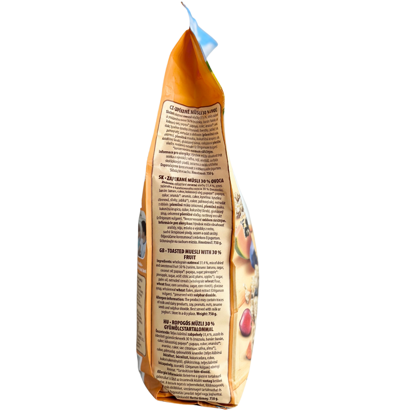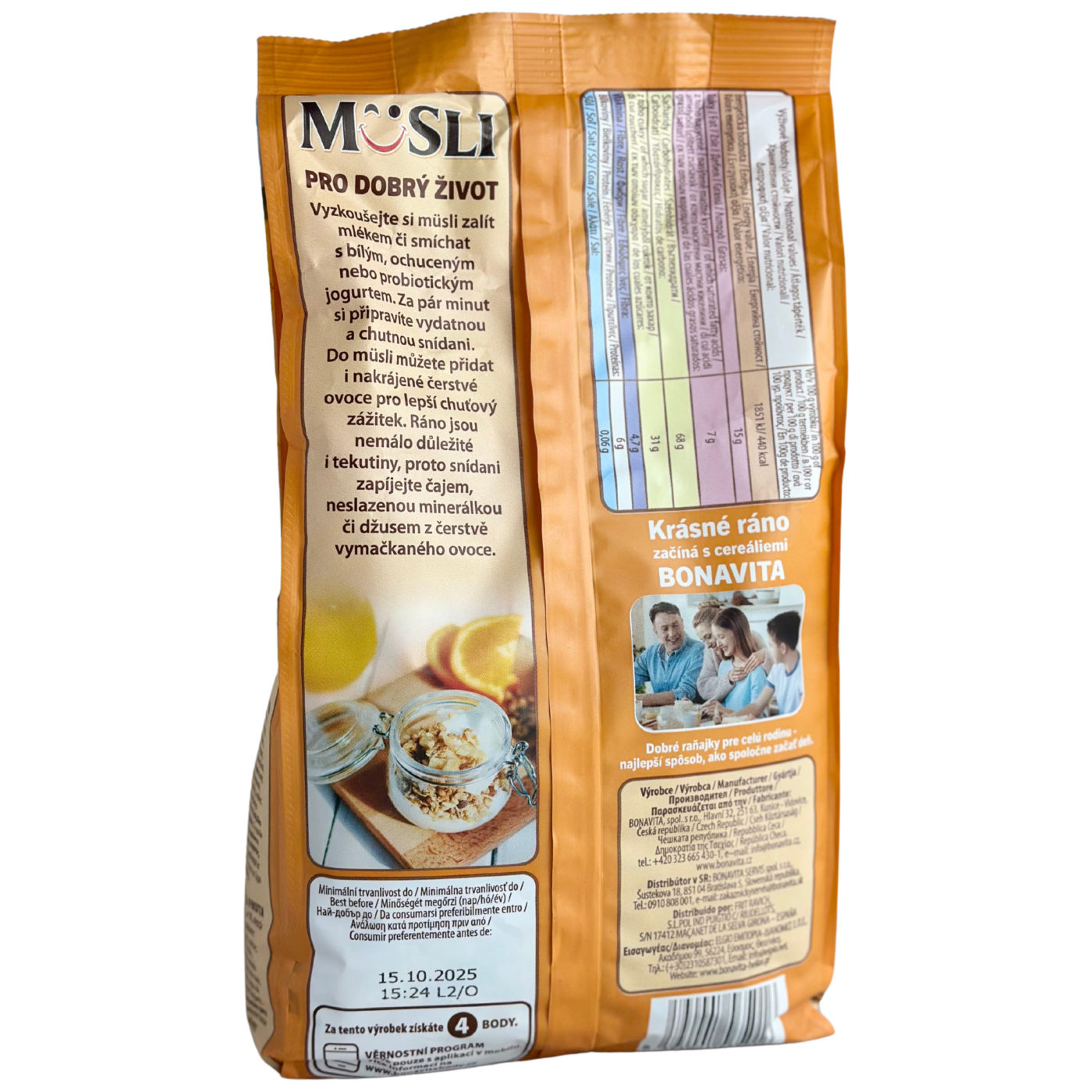 Мюслі з фруктами Musli Fruits Crunchy Bona Vita — це хрусткий та поживний сніданок, що заряджає енергією на весь день. Апетитні запечені злаки у поєднанні з натуральними шматочками сушених фруктів (родзинки, яблука, папайя, ананас тощо) створюють ідеальний баланс смаку, солодкості та текстури. Мюслі чудове джерело клітковини, вітамінів і корисних вуглеводів. Смакують з молоком, йогуртом або як перекус протягом дня.
