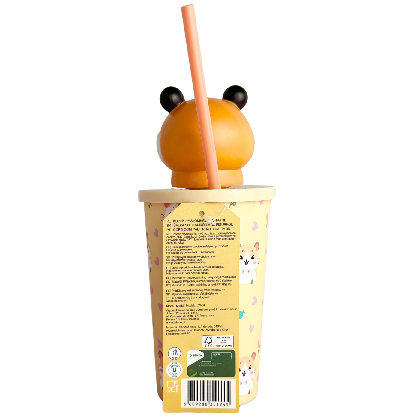 Чашка з трубочкою та 3D фігуркою хом'ячка Smukee 500ml