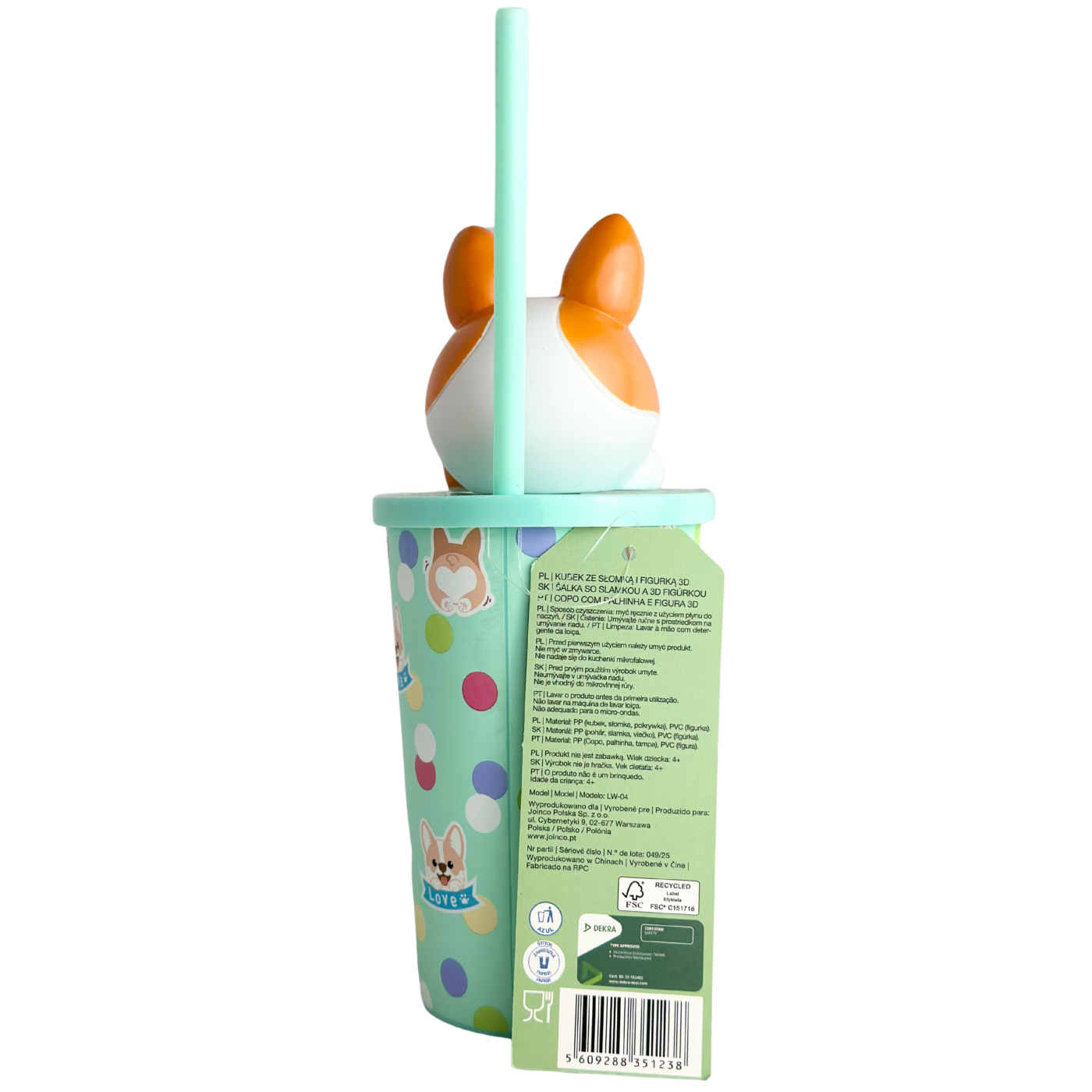 Чашка з трубочкою та 3D фігуркою собачки Smukee 500ml