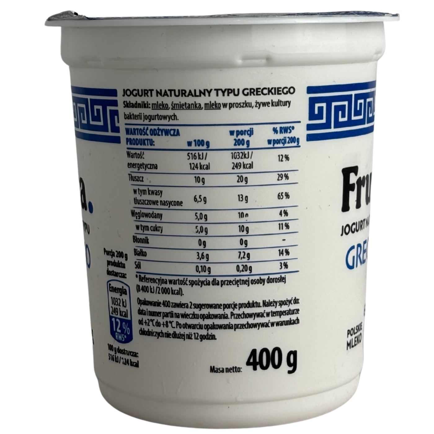 Йогурт грецький Fruvita - густий і кремовий йогурт із високим вмістом білка та насиченим молочним смаком. Він ідеально підходить для перекусів, сніданків або приготування десертів, наприклад, смузі, запіканок і фруктових салатів. Йогурт має щільну текстуру, ніжний смак і легку кислинку, що робить його освіжаючим і ситним продуктом для щоденного вживання. Fruvita можна вживати самостійно або поєднувати з медом, горіхами, ягодами та фруктами.